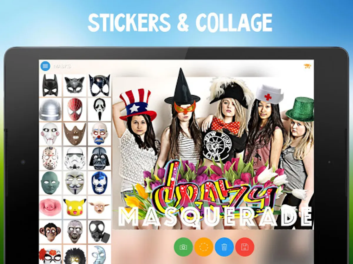 To make a collage you can use stickers, elements, decors, texts, alphabets etc.