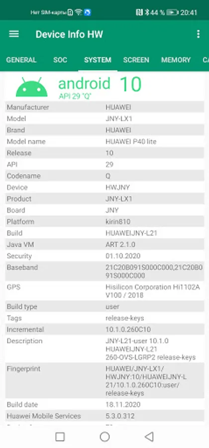 App trying detect components of your smartphone to provide complete information about device's hardware.