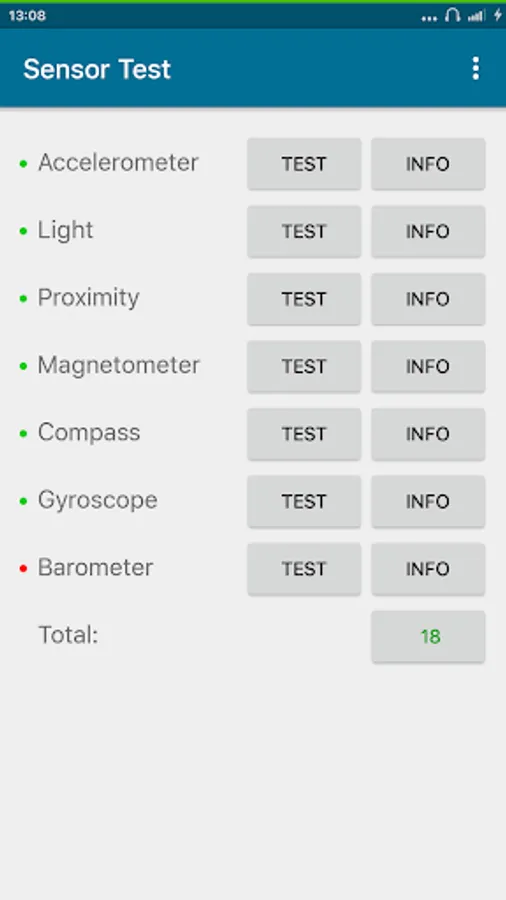 If sensor don't report any data, it will be with label "no data" on sensor test screen. Than most situations it means that devices doesn't have it type of sensor, for other case it not working.