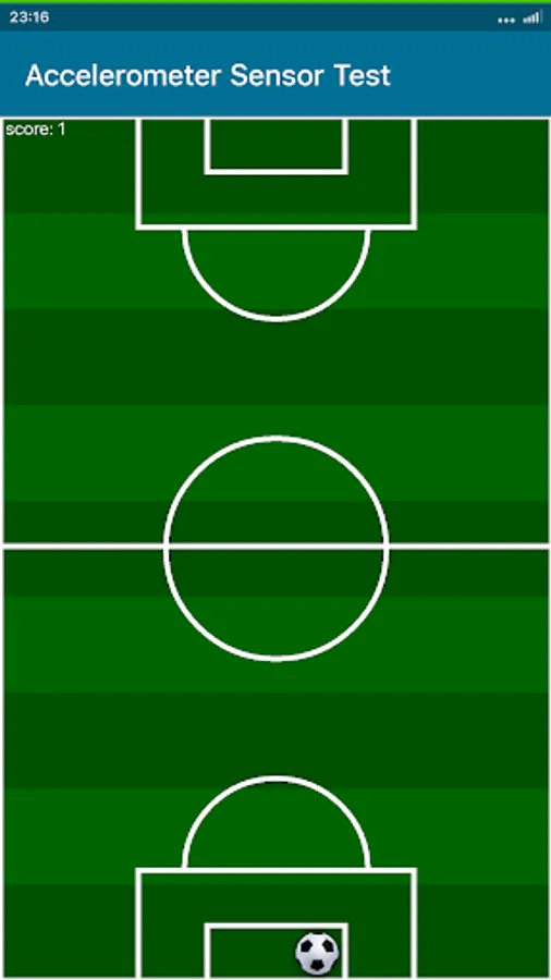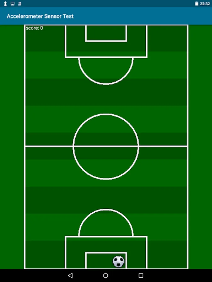 Test football. When the device is tilted, the ball should move in the direction of inclination. Try to score the ball into the goal.