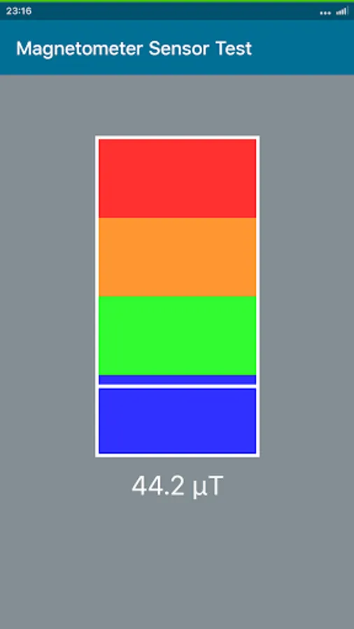 Scale with level, which showing the current value. Move device close to a metal object, the value should increase.