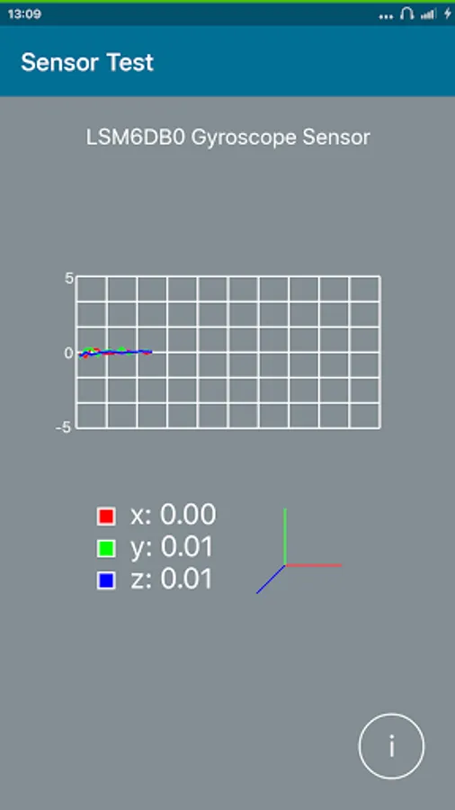 Shows a graph of the speed of rotation along the x, y, z axes. When stationary, values tend to 0.