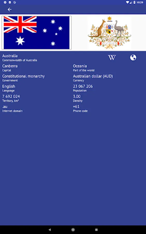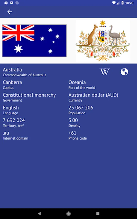 When developing our application were taken into account all the wishes and needs of travelers - real and virtual. Only in our directory of the world collected the most complete information needed when traveling to a particular state - from the area and the national currency to the form of government and telephone code.