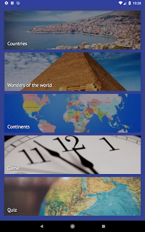 - quiz (20 questions about different countries, flags, coats of arms and other interesting things).