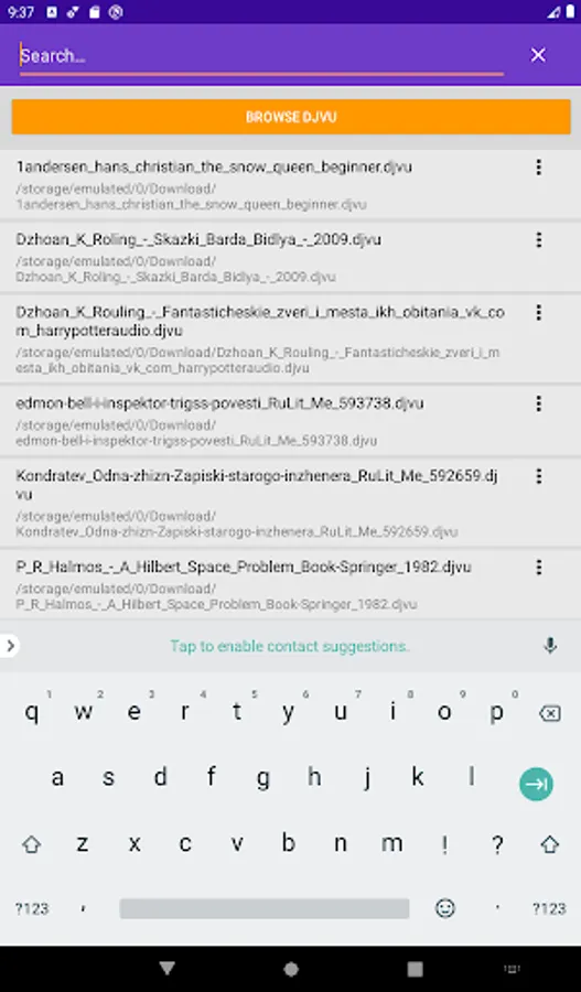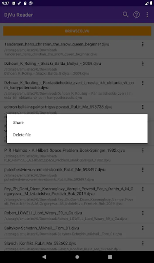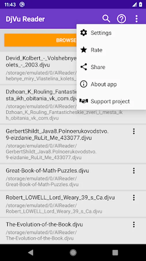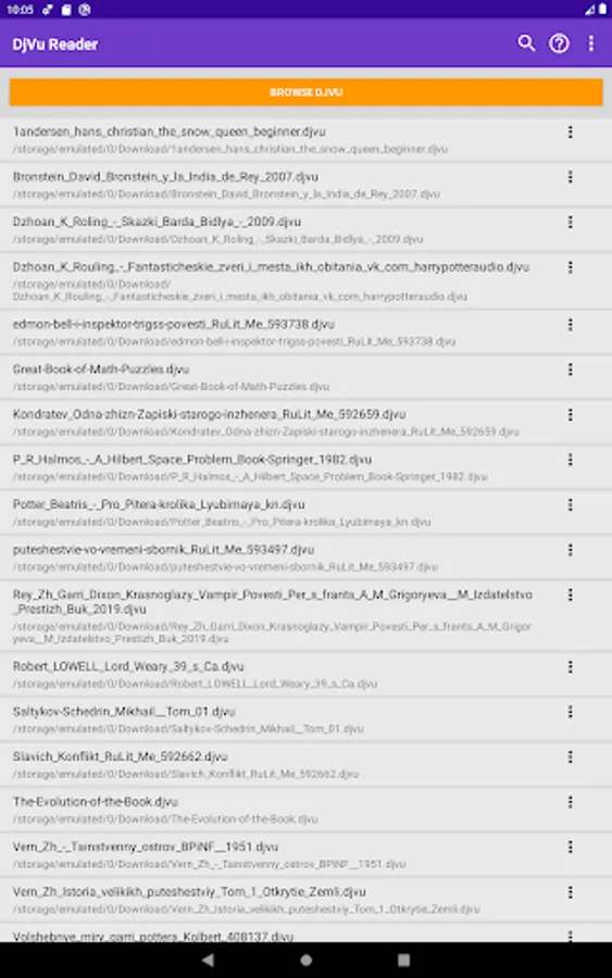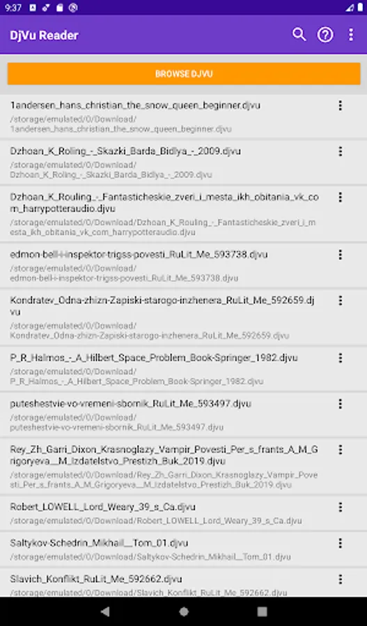 💜 search for all DjVu files in the device storage by folders that the user is allowed to access;