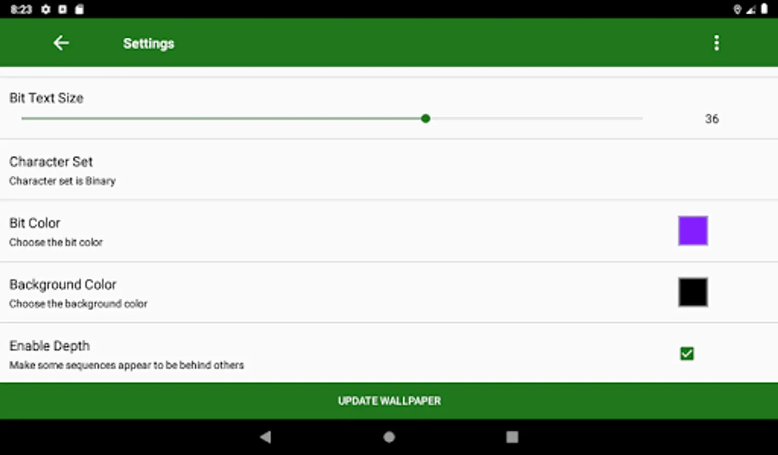 ☠ it is possible to set the depth to display some sequences behind others, so the binary code is more atmospheric.