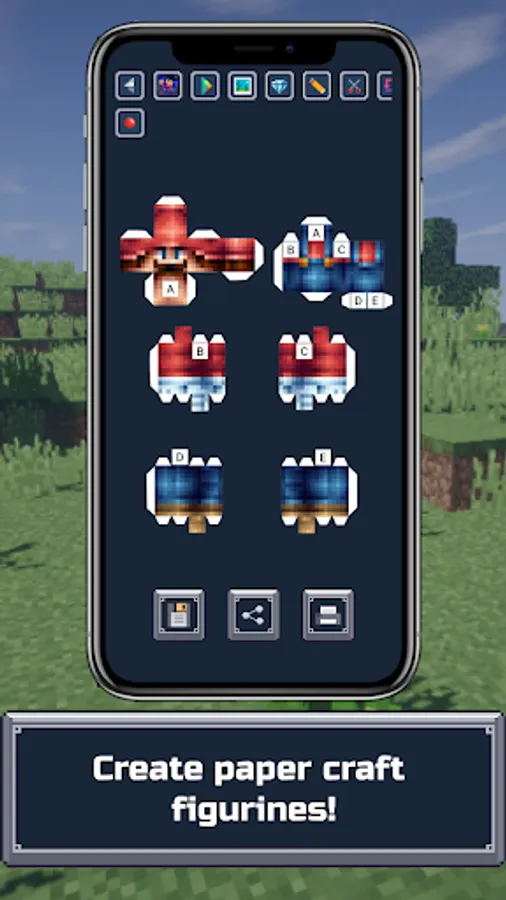 You can save minecraft skins in different formats to build blocks on any version of the game. You can create a paper model of the skin, print it out, cut it out and glue it for a real minecraft game. Also, do not forget to record a video and share the process of creating skins for minecraft with familiar players.
