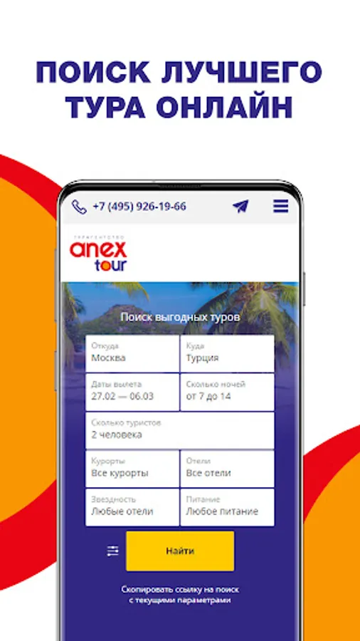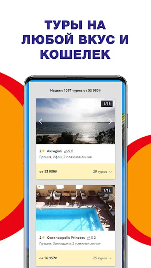 In the application of our travel agency you will find convenient forms for booking and paying online. Quick search and sorting of tours, payment in a convenient way - all this will help you buy a ticket without leaving your home.