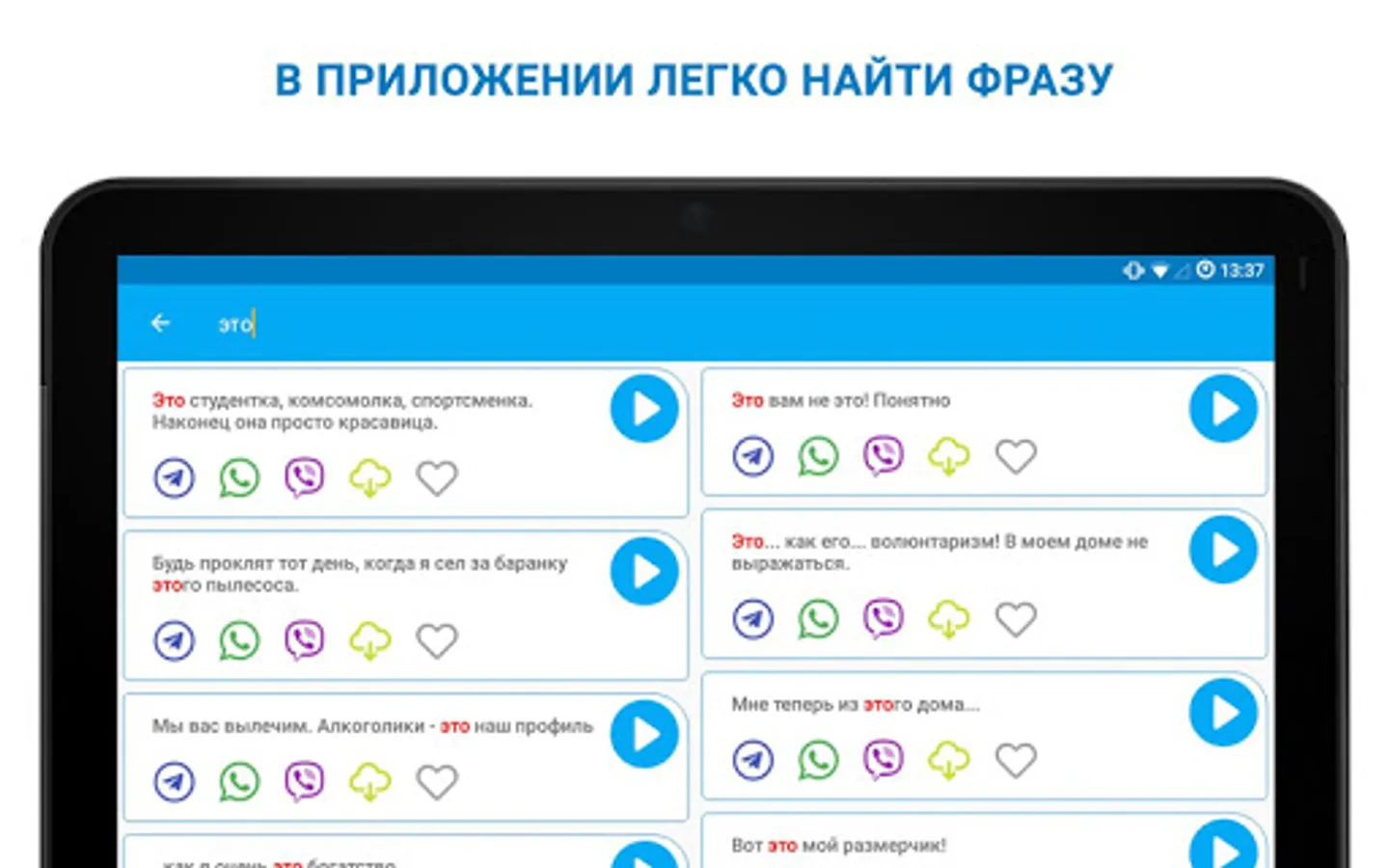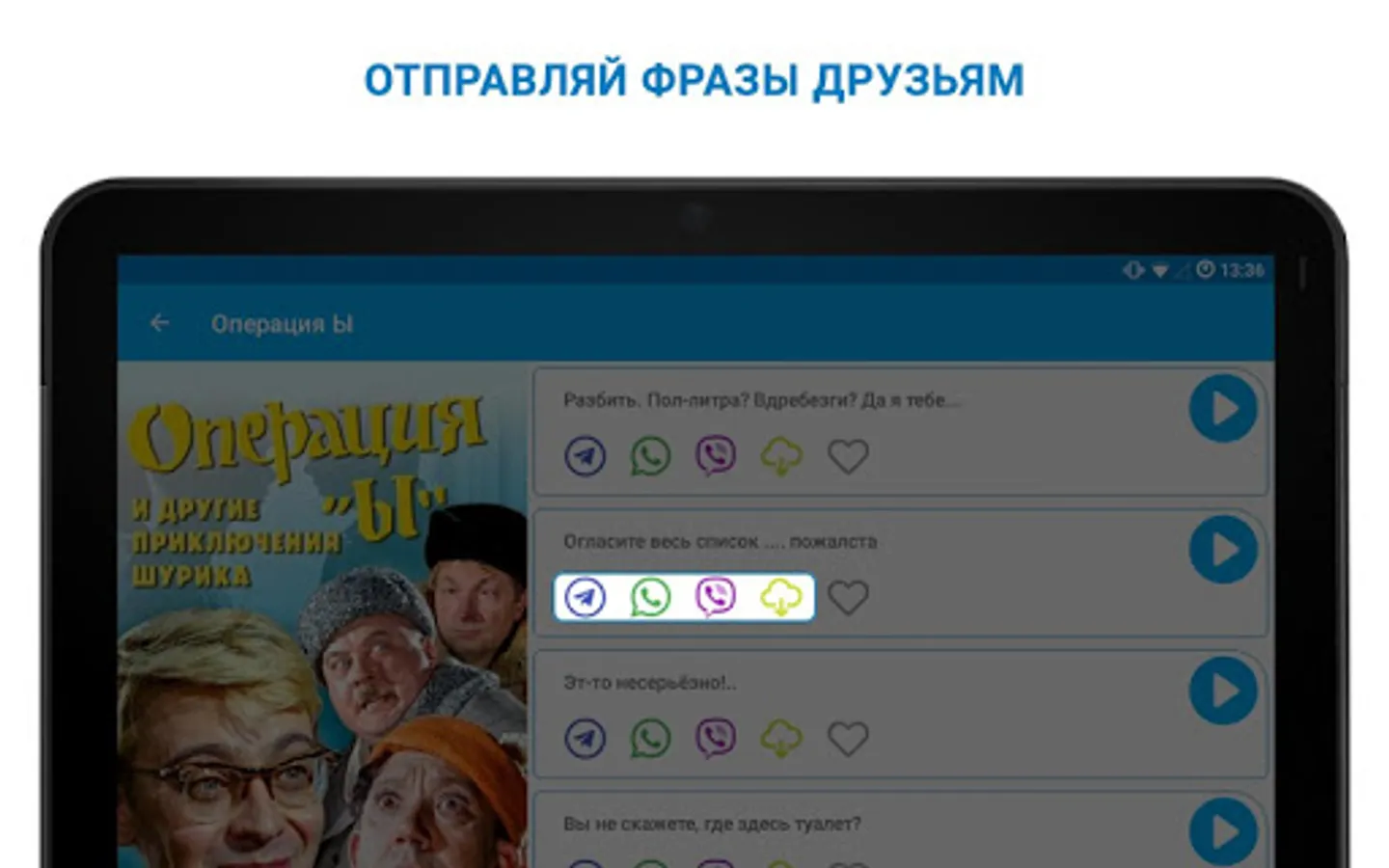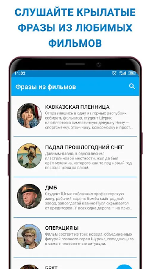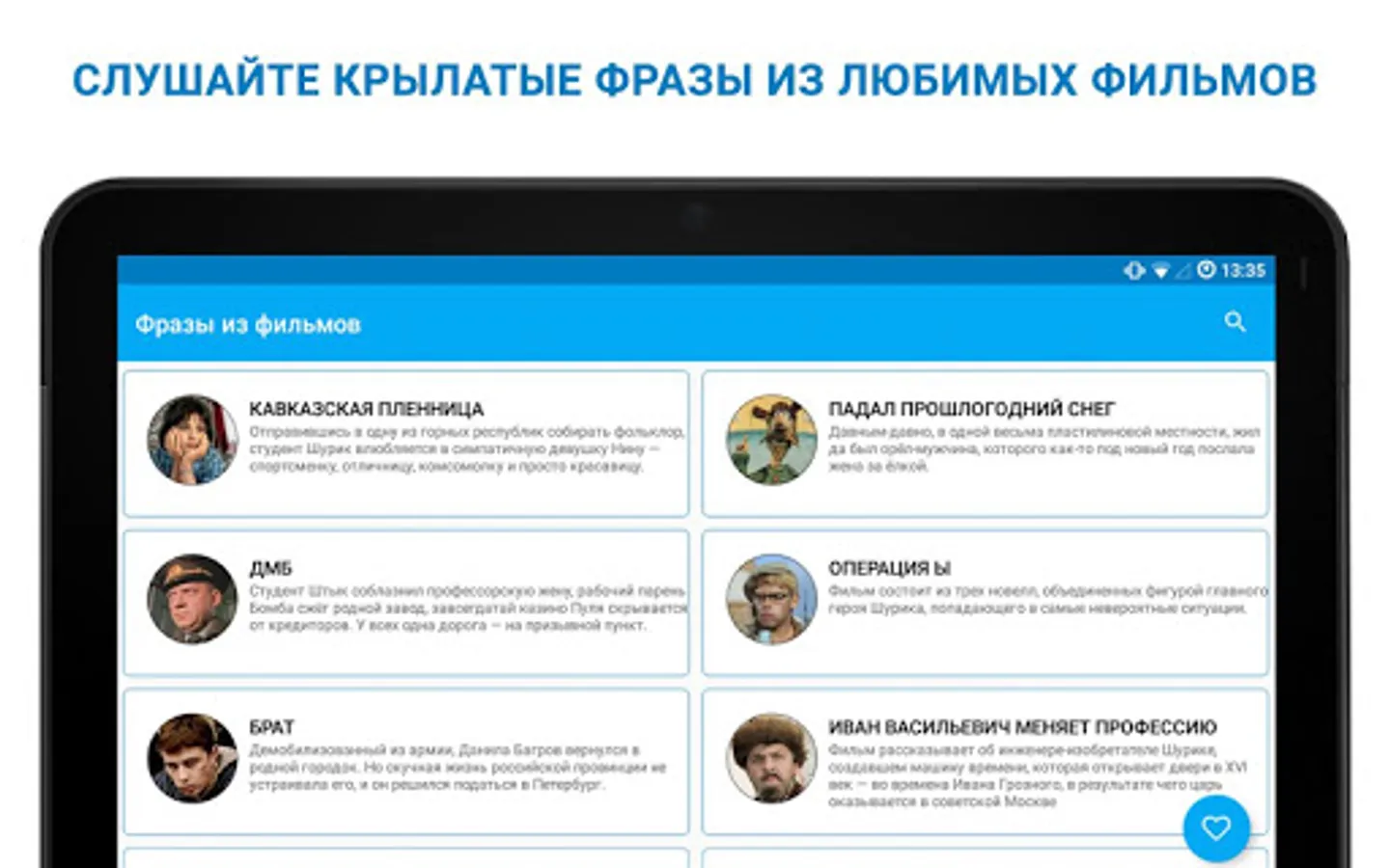 Today, there are many applications whose task is to help the user spend time usefully. Sometimes these are games, or programs that help in everyday life. But there are also programs whose task is to play a secondary role. "Phrases from Soviet films" - this is what is suitable for any generation.