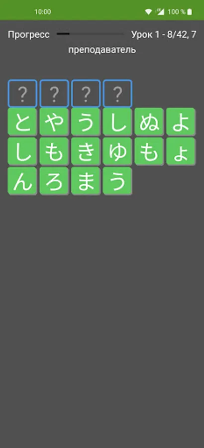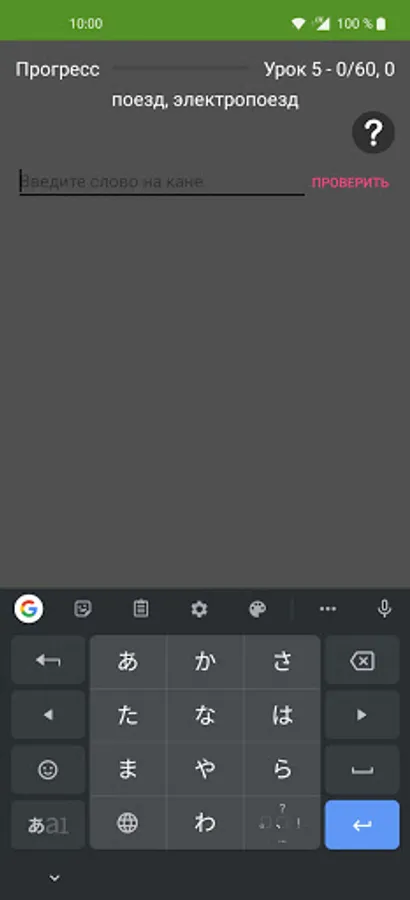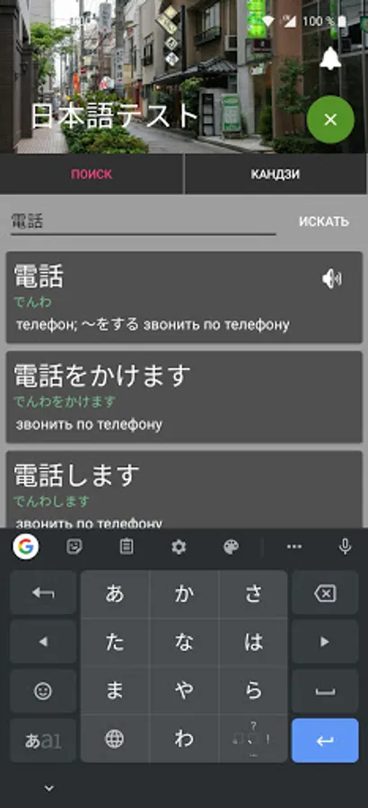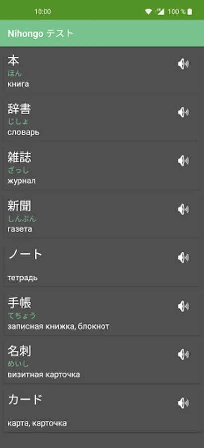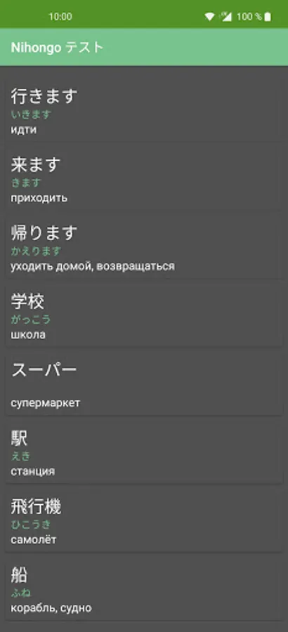 Learn Japanese simply by taking tests, expand your vocabulary and learn the spelling of Kana words.