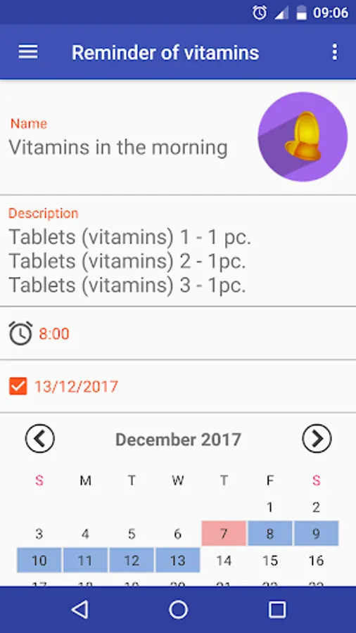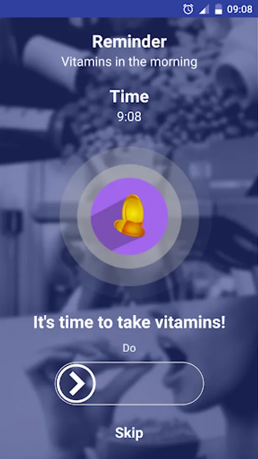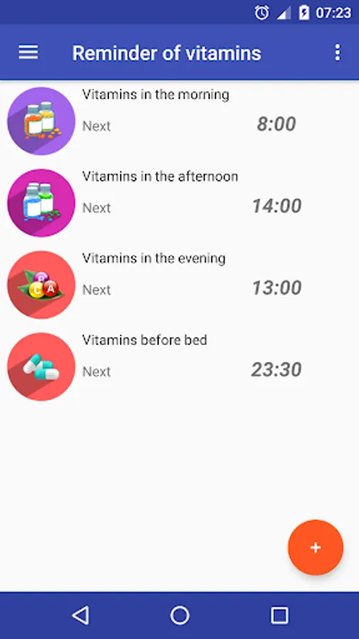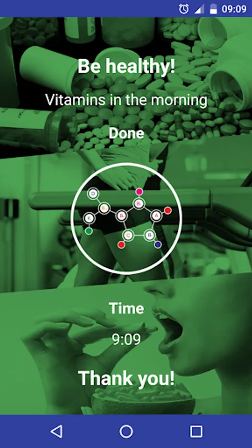 The application at the right time reminds of the taking of tablets (vitamins) and shows statistics of taking vitamins.