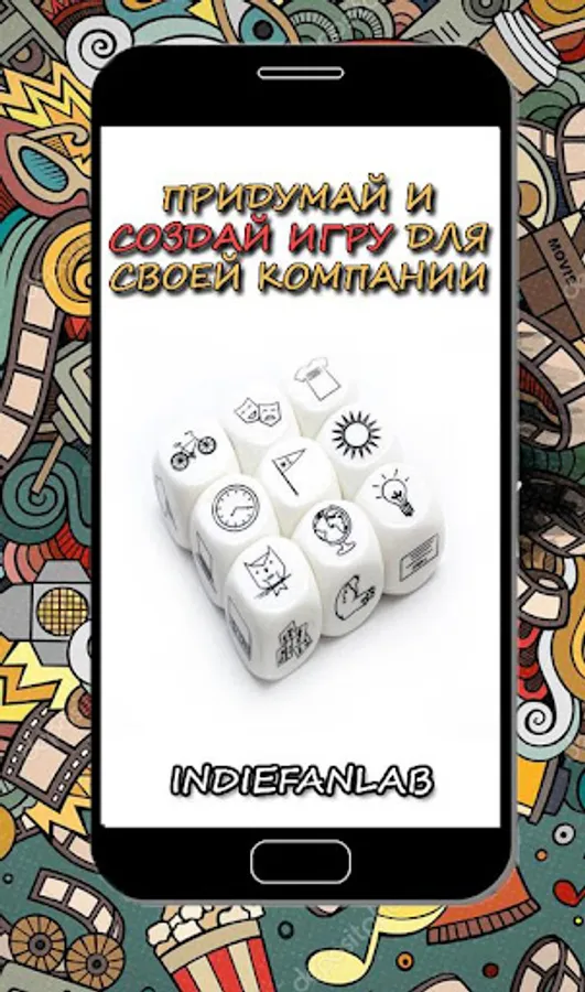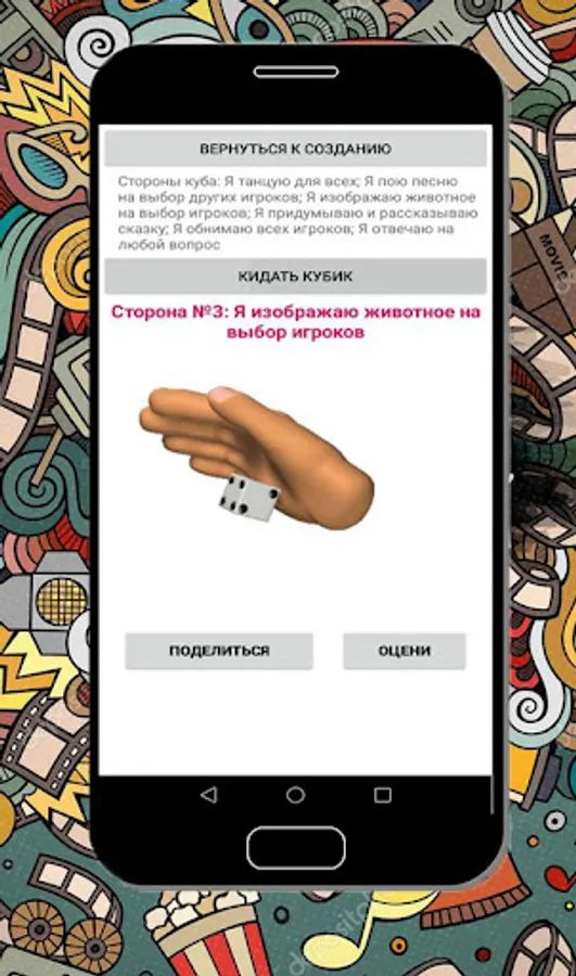 "My action" - An example of a game with a cube in a company: apply "actions" to all sides of the dice, sit in a circle and roll the cube in turn, starting with the owner of the phone.