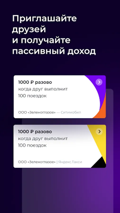 Enter your bank details in the mobile app and get fast payments straight to your card. We provide the ability to withdraw money from Yandex taxi or citymobile.
