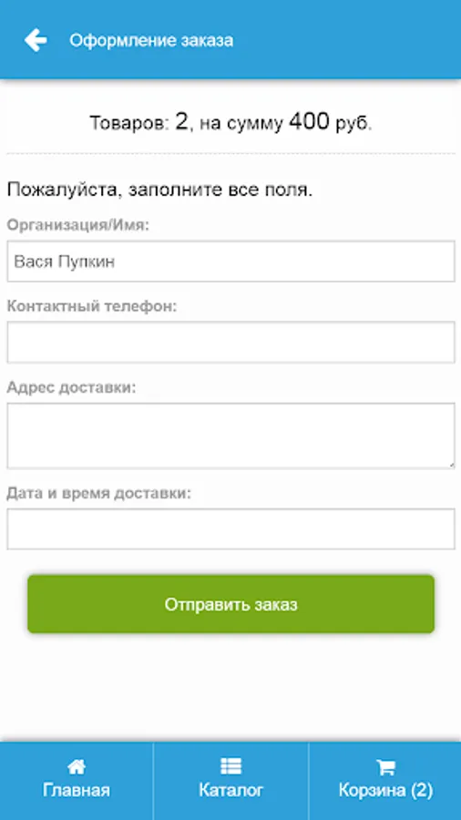Application for quick and easy ordering of water and related products in the company of "Spring", Vladivostok.