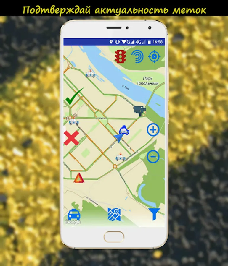 Noticed a police post, to warn other road users by pressing a single button. Just drive past the post of DPS, you can confirm the relevance of the label in the dialog box by clicking the tick or cross.