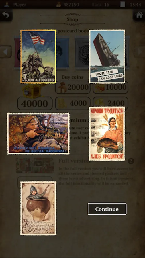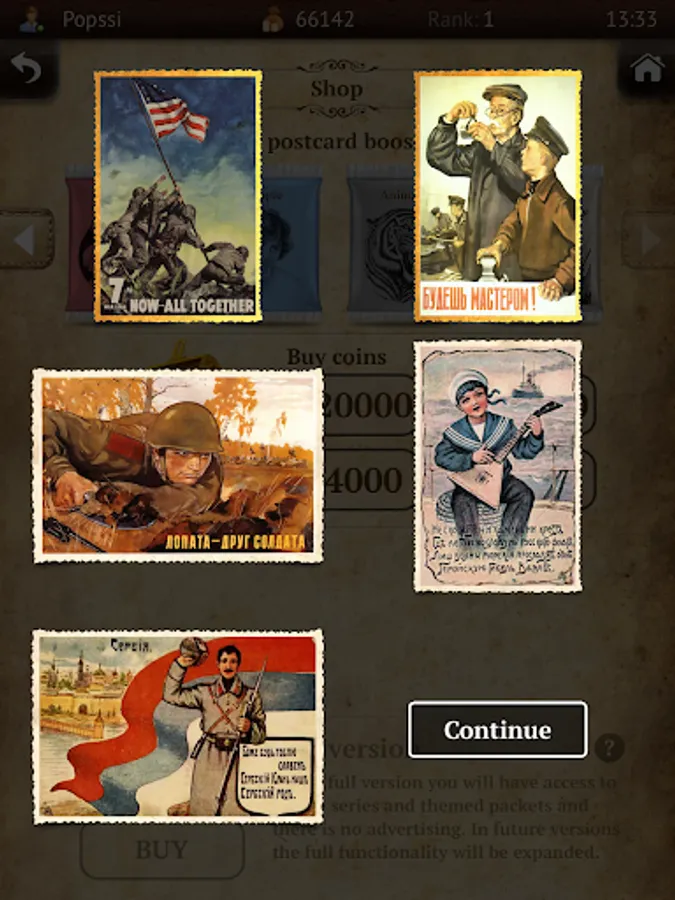 In the game you will find 100 years old postcards such famous authors like Elizabeth Boehm, A Lavrov, Solomko, as well as popular Soviet and foreign Postcards.