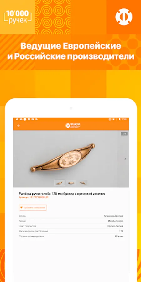 No more stacks of paper catalogs. Easy access to the assortment of 7 leading manufacturers from Europe, Russia and China from any mobile device. More than 1000 models of furniture handles on the screen of your phone or tablet are always at hand.