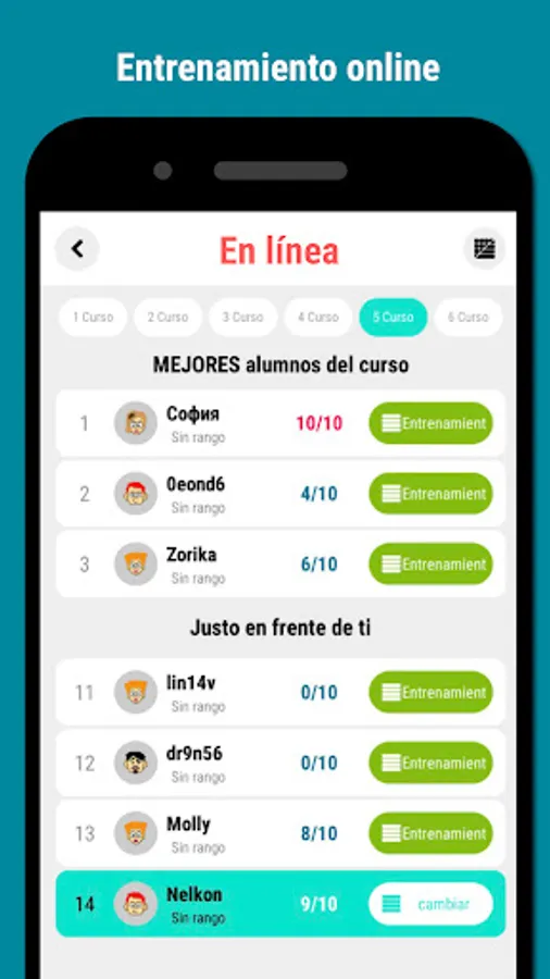 - Aprendizaje online: en este modo vas a aprender con estudiantes de tu mismo curso, seleccionado la traducción correcta para 10 palabras y tratando de subir en el ranking del curso hasta alcanzar la posición más alta.