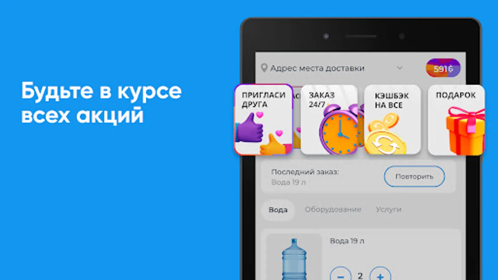 Download the application "Altyn-Bulak Bishkek" on your smartphone and order water 24/7. You will be able to repeat the order with the click of a button, see the entire purchase history and keep abreast of all the company's promotions.