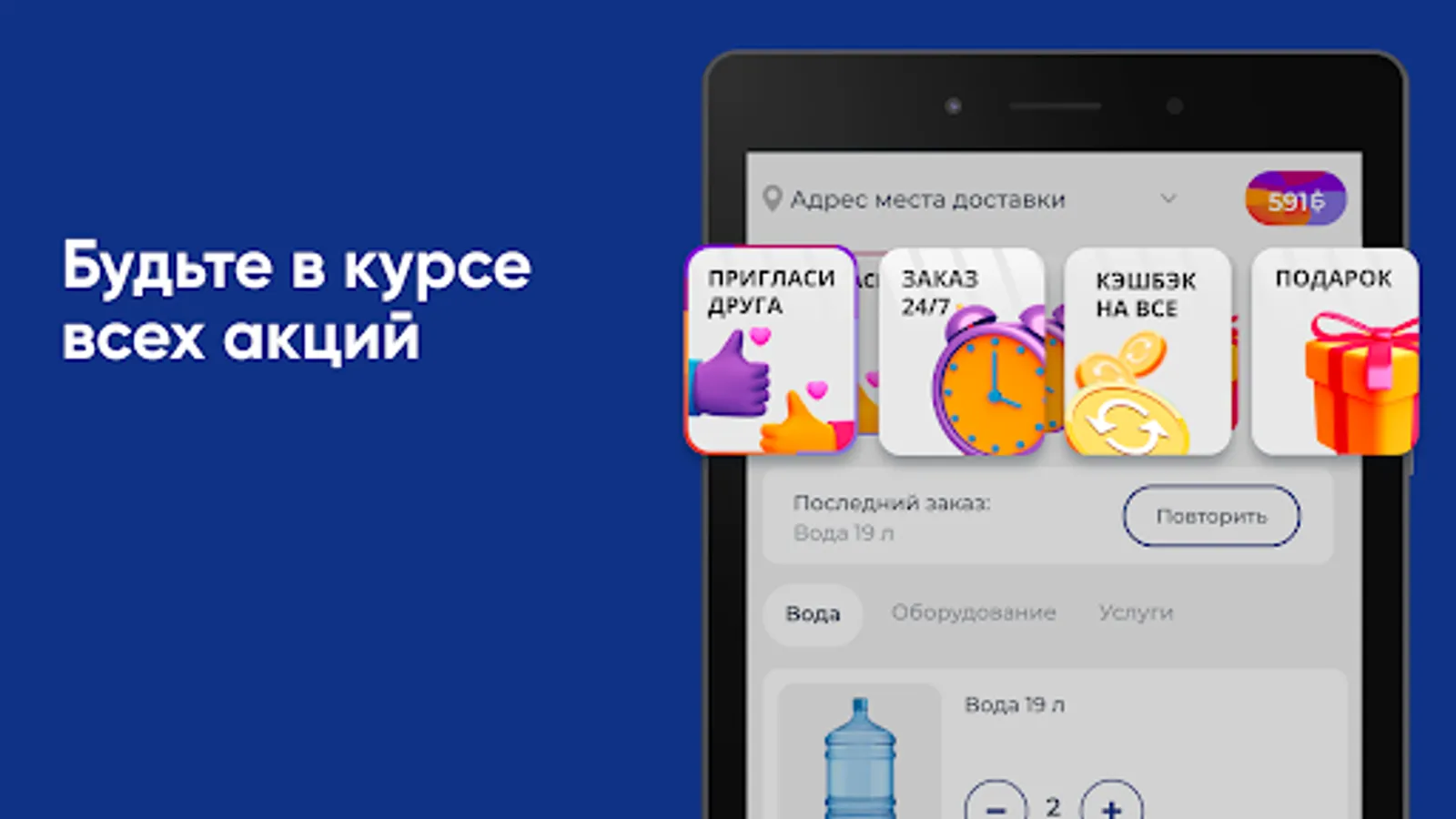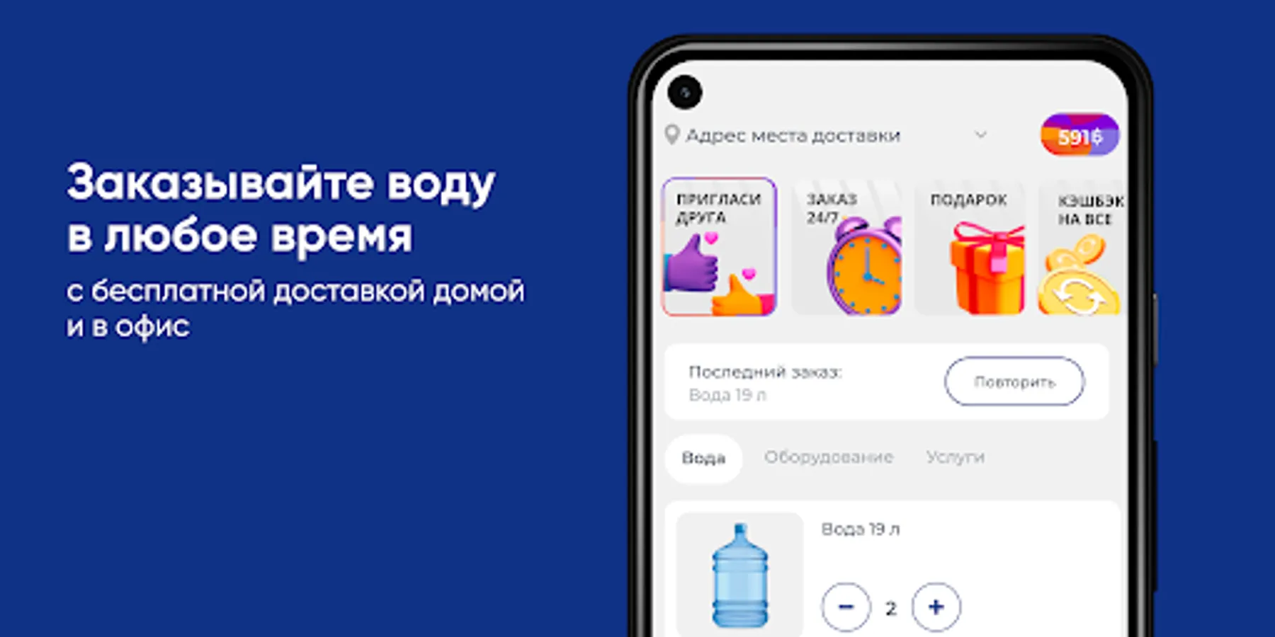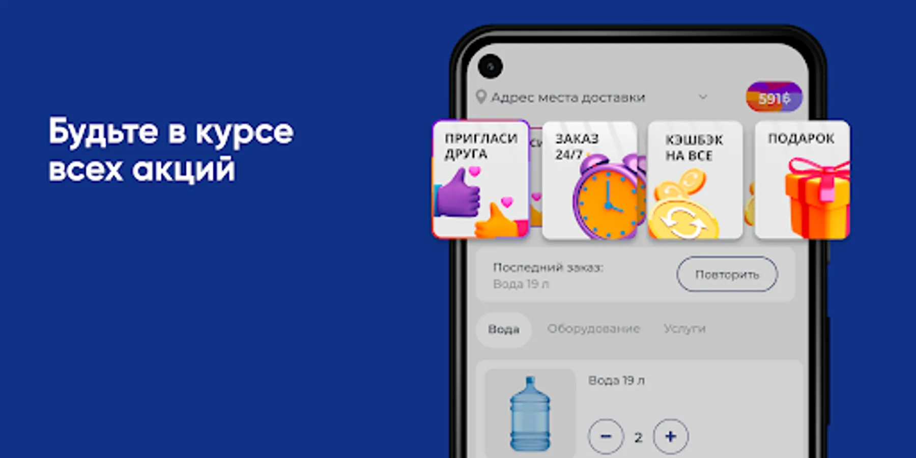 Download the Aqualife67 application to your smartphone and order water 24/7. You will be able to repeat the order by pressing one button, see the entire history of purchases and be aware of all the company's promotions.
