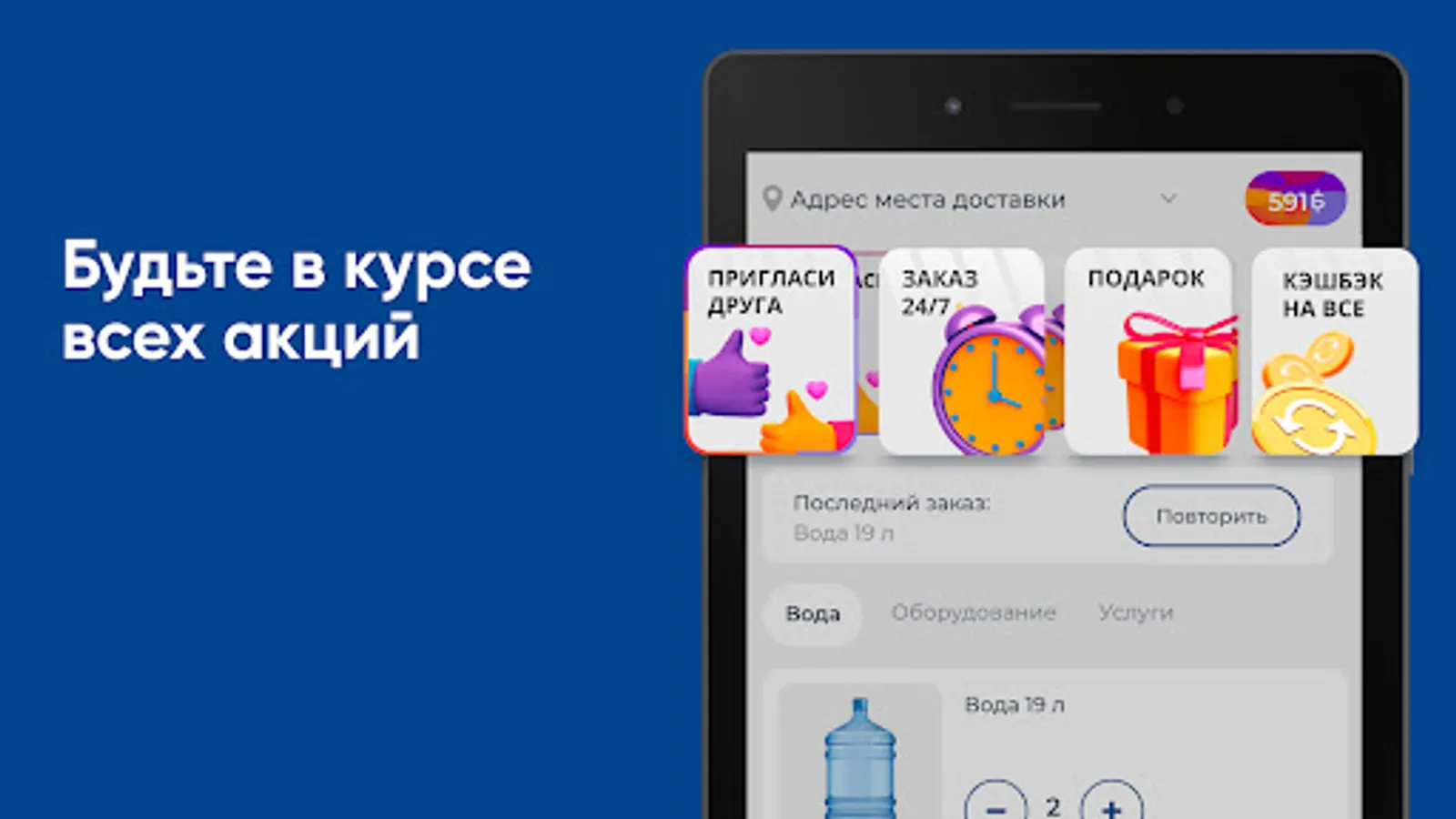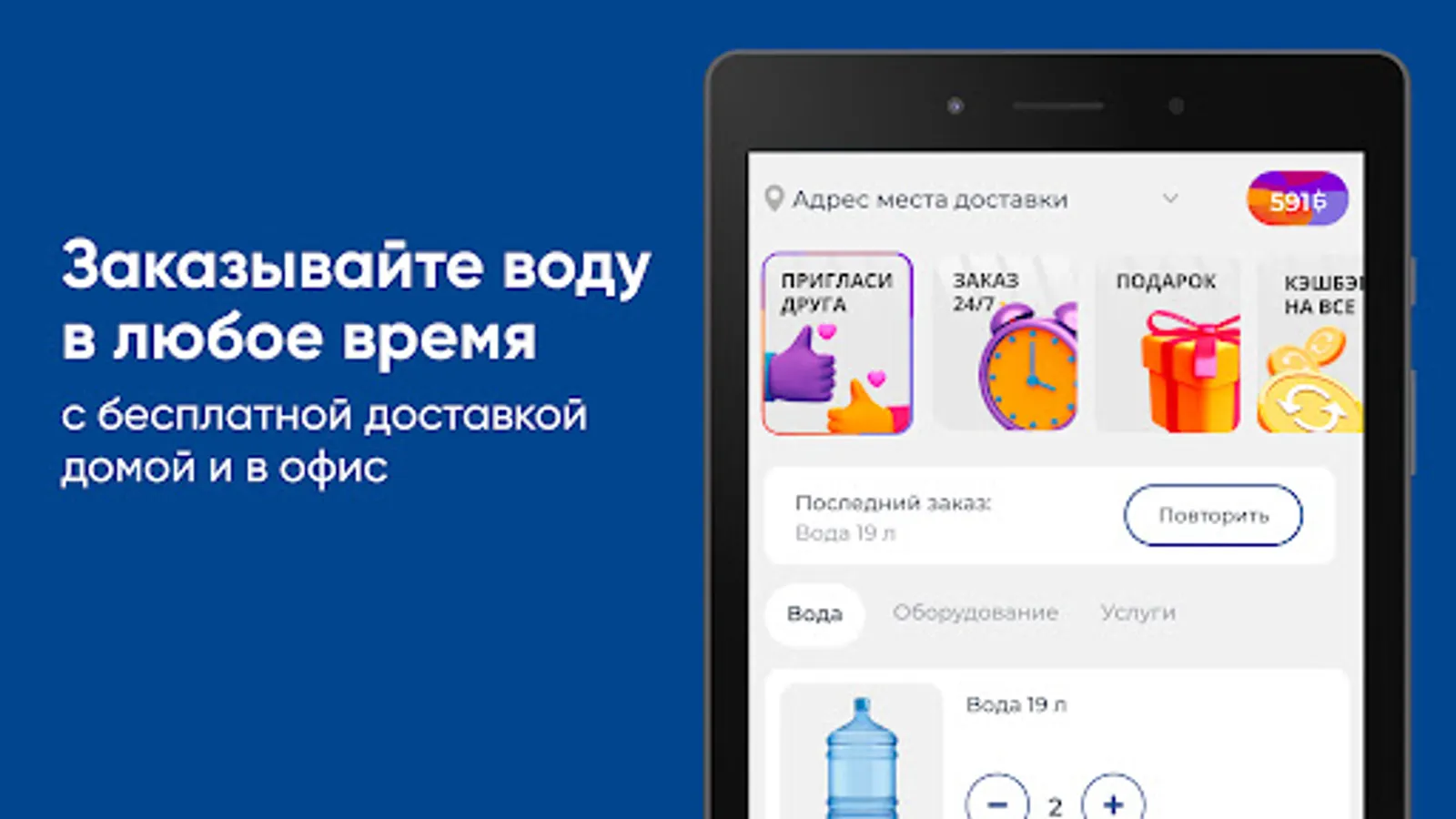 Download the application "Aqua Life Pavlovo - Water Delivery" on your smartphone and order water 24/7. You will be able to repeat the order with the click of a button, see the entire purchase history and keep abreast of all the company's promotions.