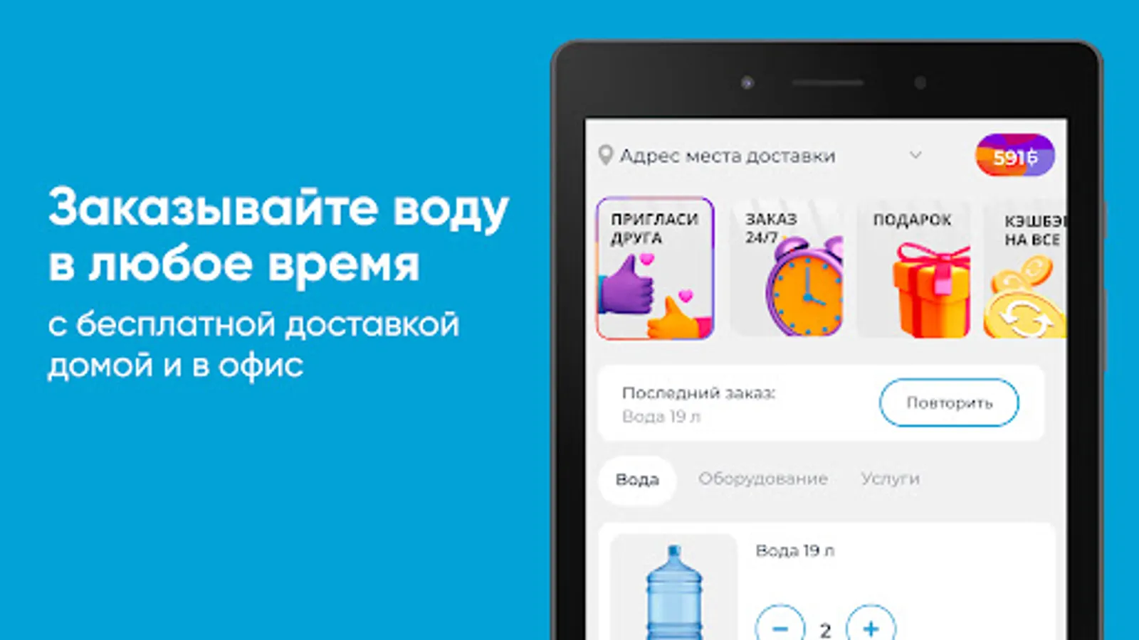 Download the ARTE Nizhnevartovsk application on your smartphone and order water 24/7. You will be able to repeat the order with the click of a button, see the entire purchase history and keep abreast of all the company's promotions.