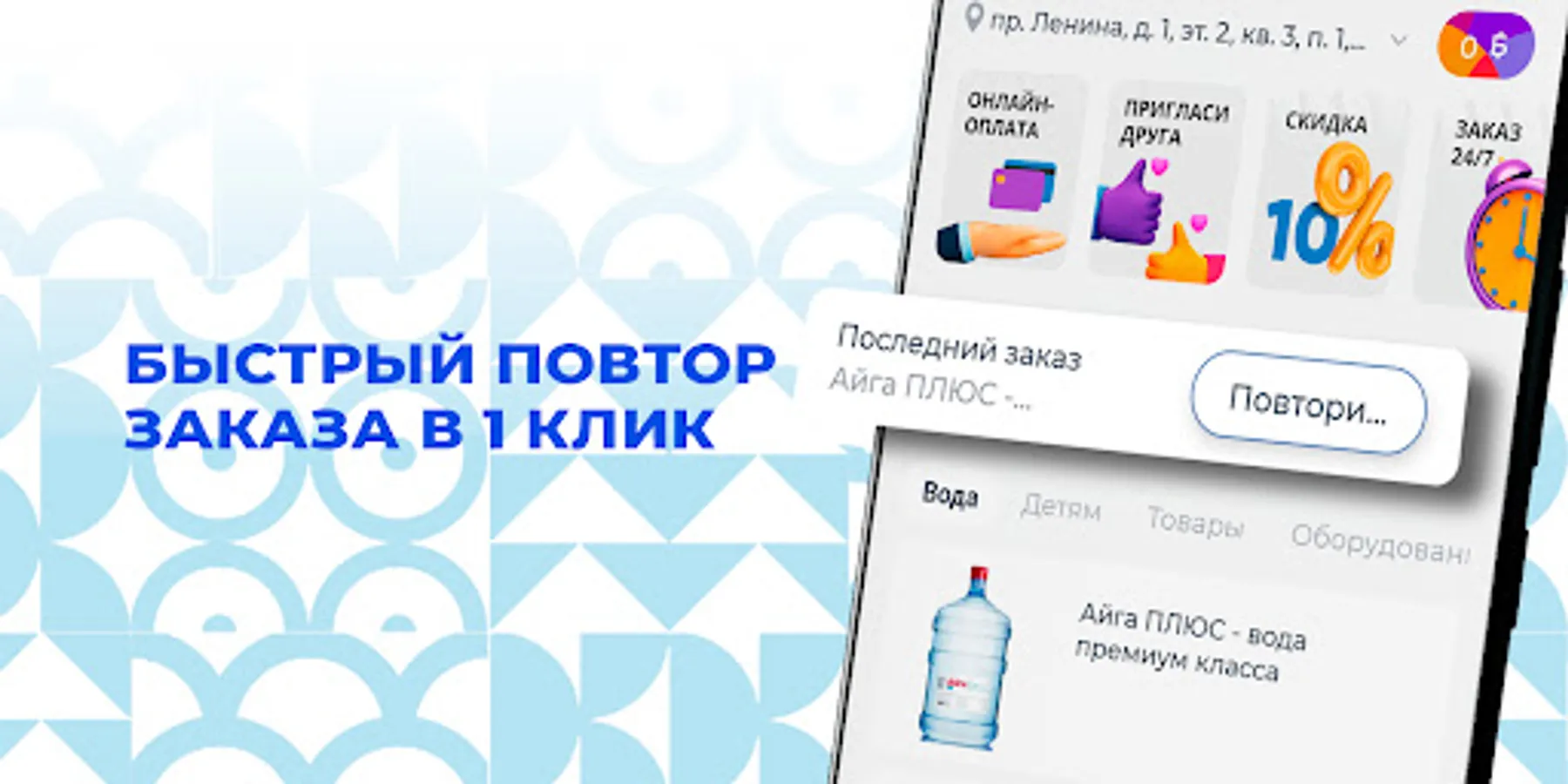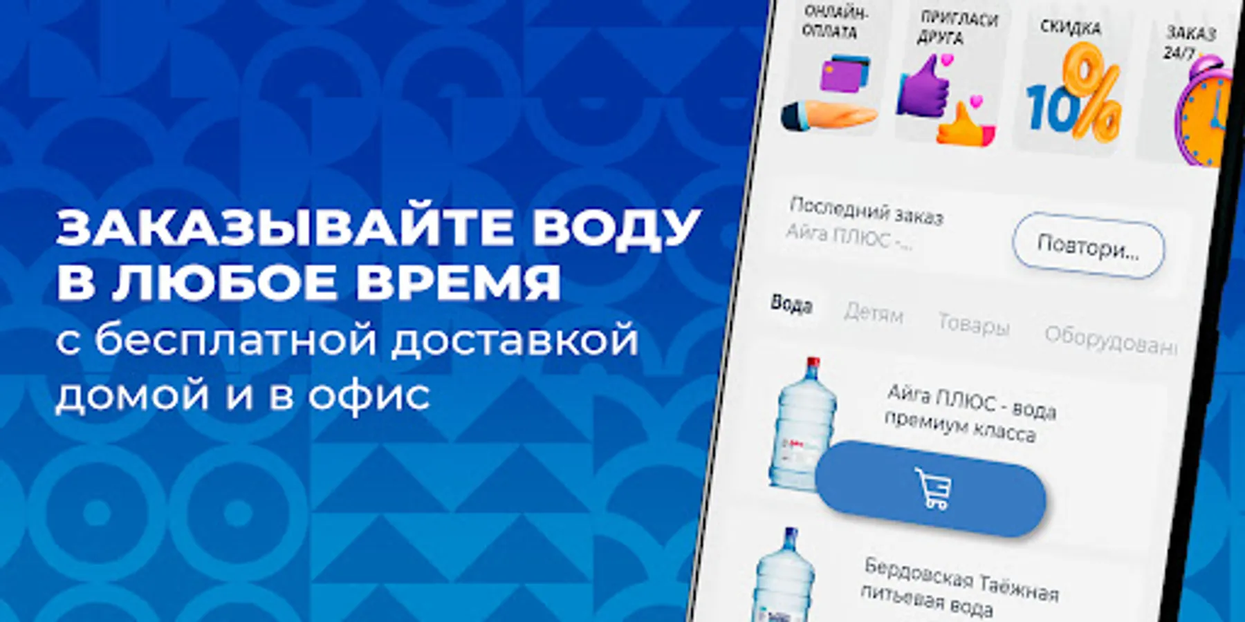 Download the application "Pure Water Siberia" on your smartphone and pay for purchases online. You will be able to repeat the order with the click of a button, see the entire purchase history and be aware of all special offers.