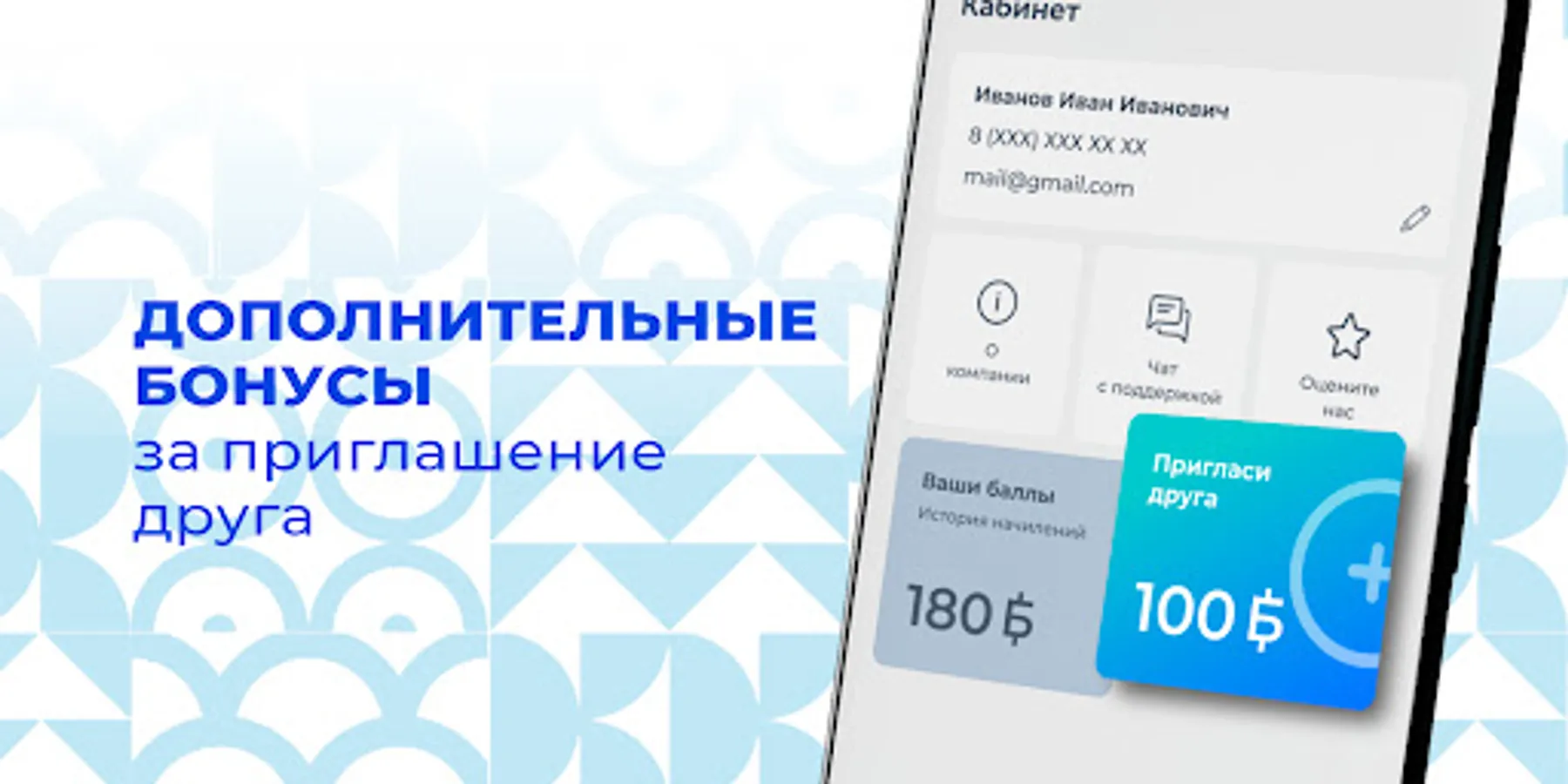 For each order you get cashback for your next purchases. And for inviting your friends to the application, both you and your loved one will receive additional points.