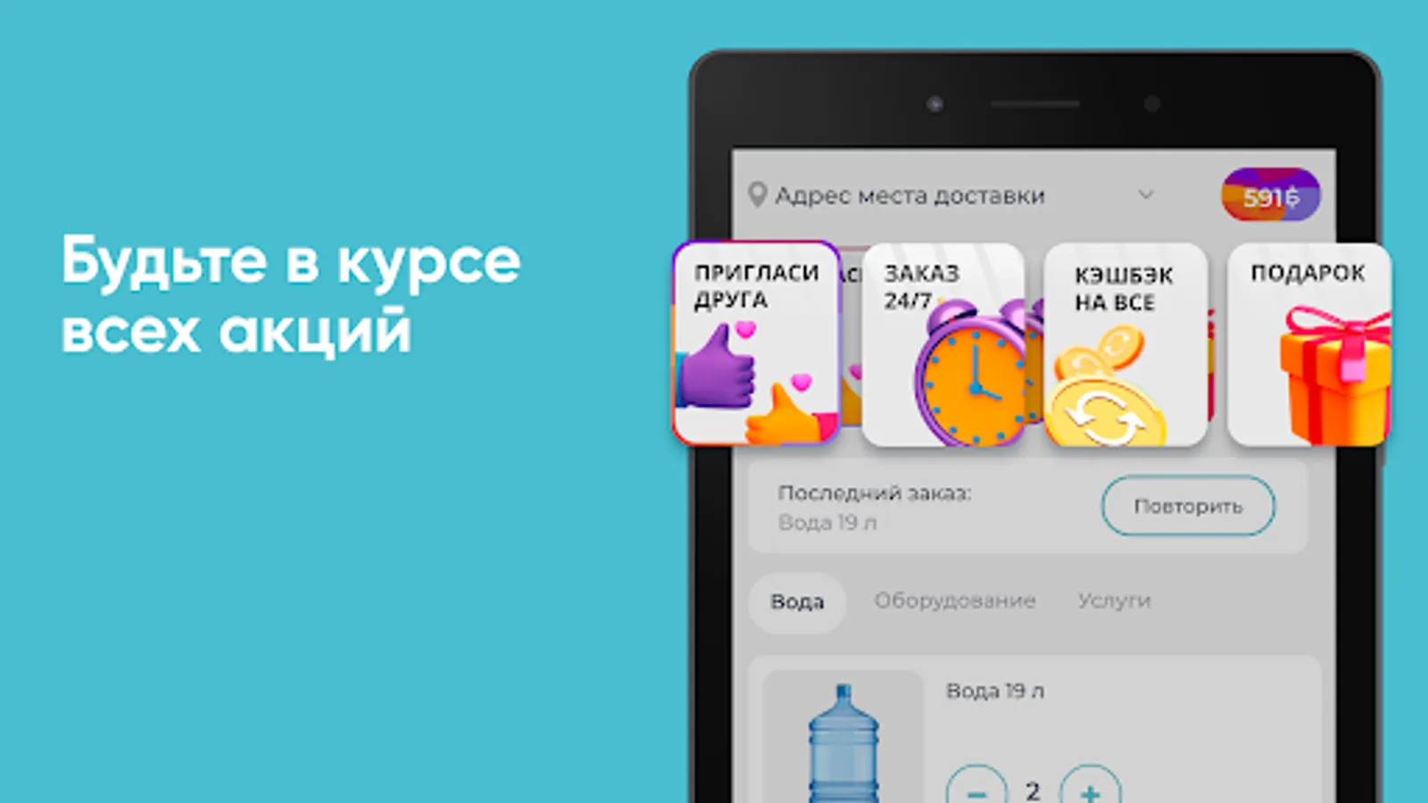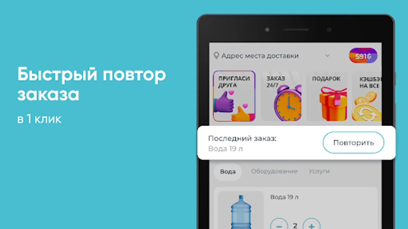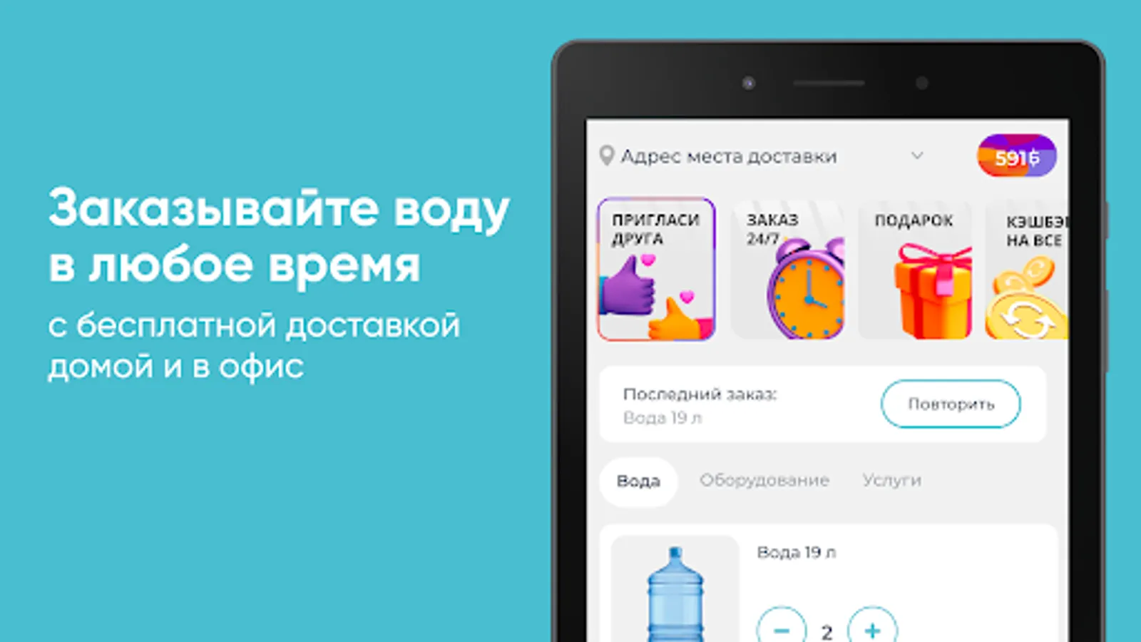 Download the DA VODA app on your smartphone and order water 24/7. You will be able to repeat the order by pressing one button, see the entire history of purchases and be aware of all the company's promotions.