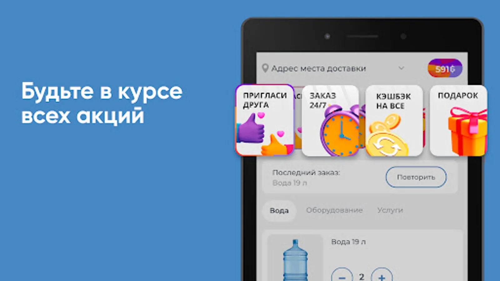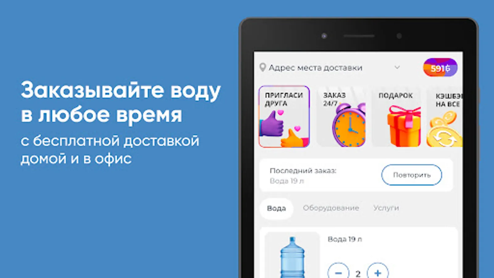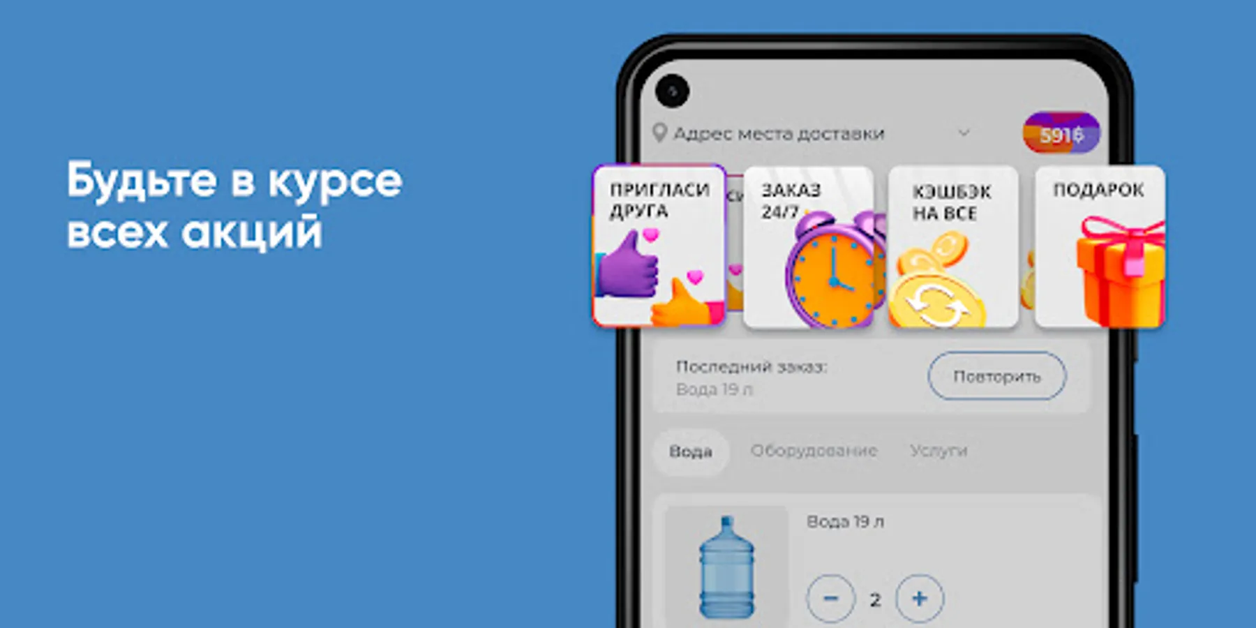 Download the Valley of Springs app to your smartphone and order water 24/7. You will be able to repeat the order by pressing one button, see the entire history of purchases and be aware of all the company's promotions.
