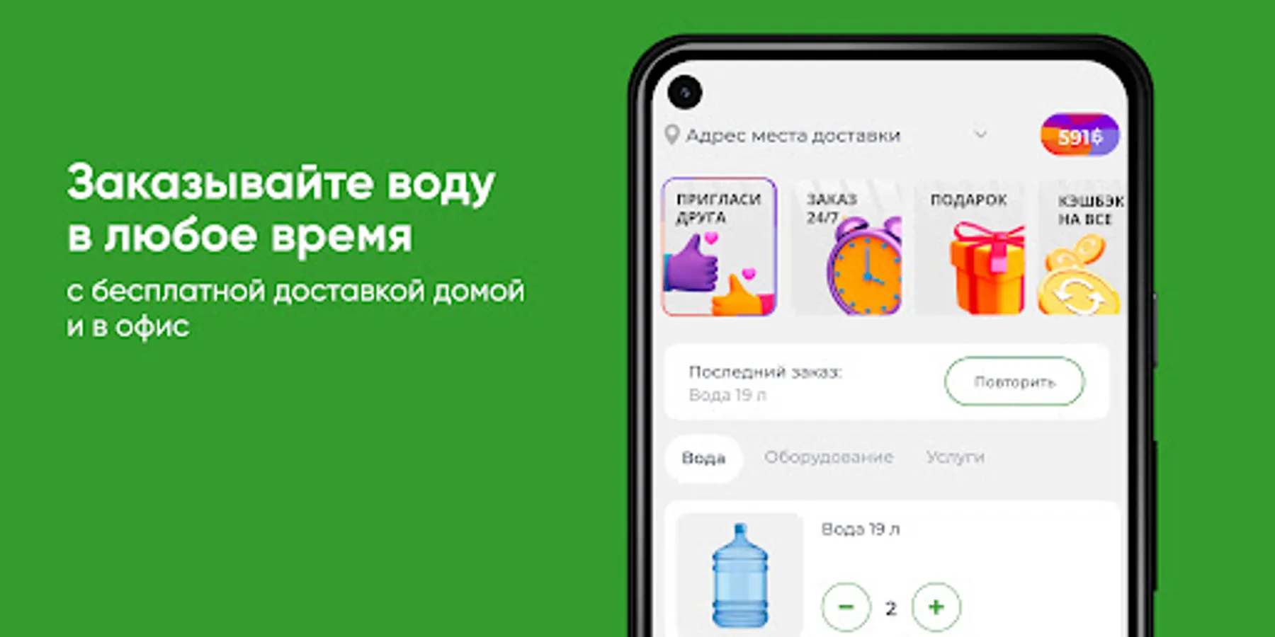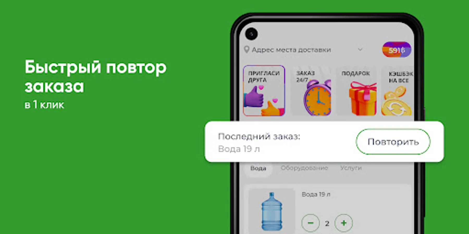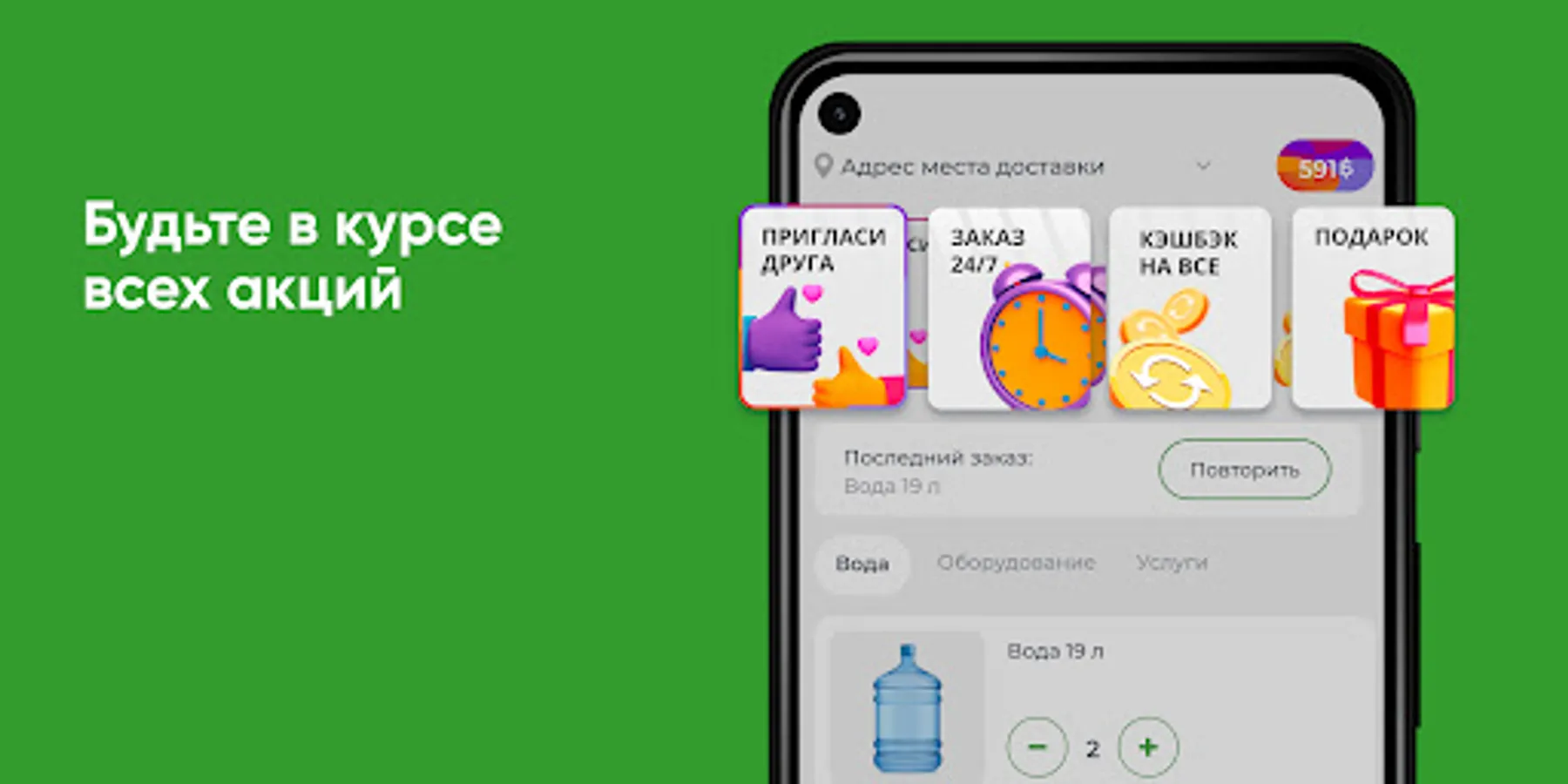 Download the Mountain Spring app to your smartphone and order water 24/7. You will be able to repeat the order by pressing one button, see the entire history of purchases and be aware of all the company's promotions.