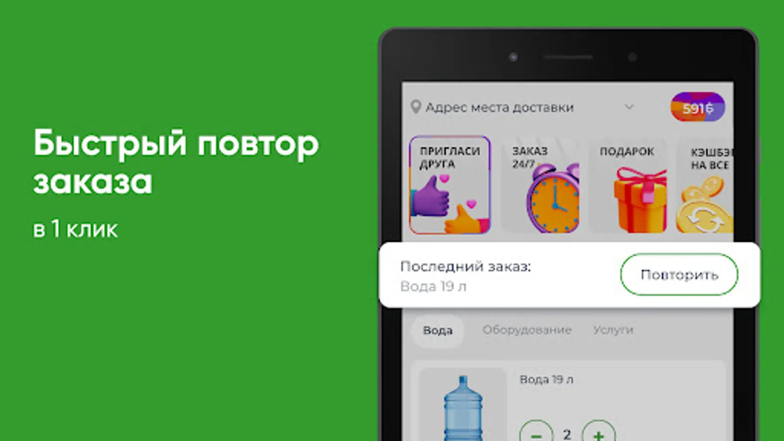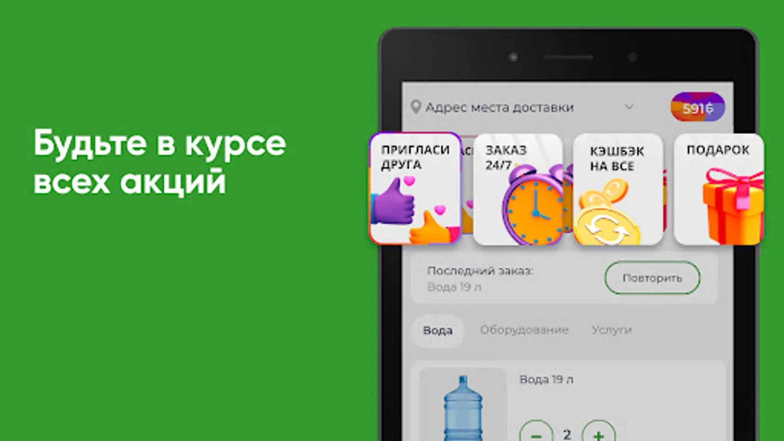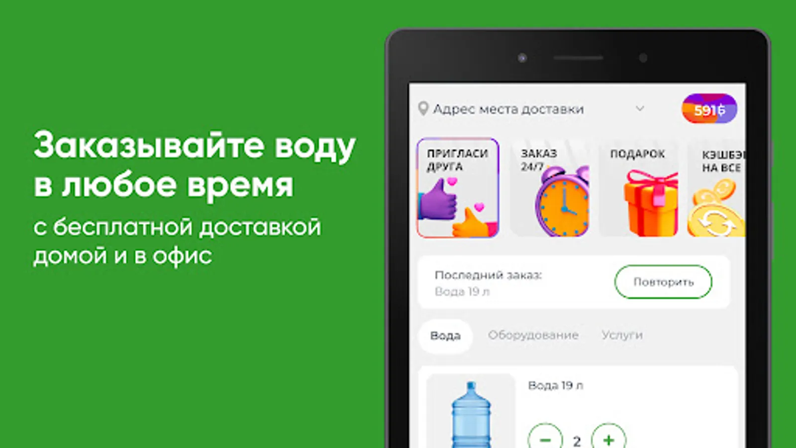 Download the Mountain Spring app to your smartphone and order water 24/7. You will be able to repeat the order by pressing one button, see the entire history of purchases and be aware of all the company's promotions.