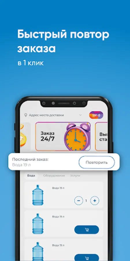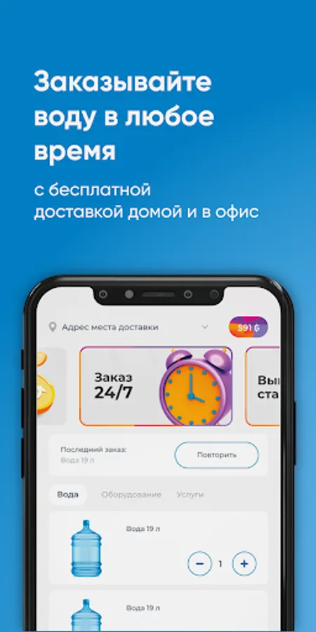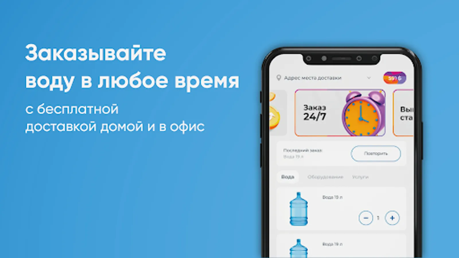 Download the application "KING-AQUA Yakutia" on your smartphone and order water 24/7. You will be able to repeat the order with the click of a button, see the entire purchase history and keep abreast of all the company's promotions.