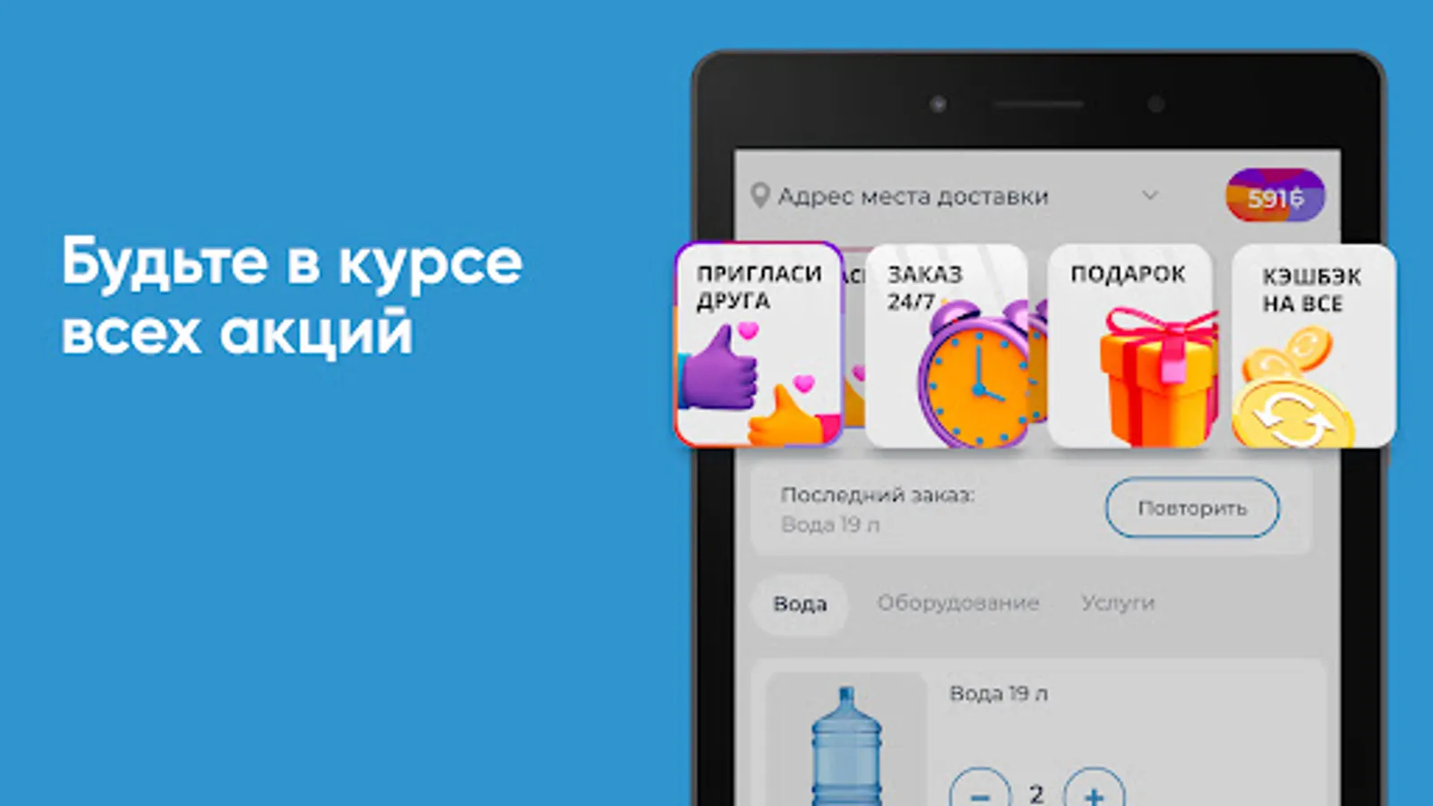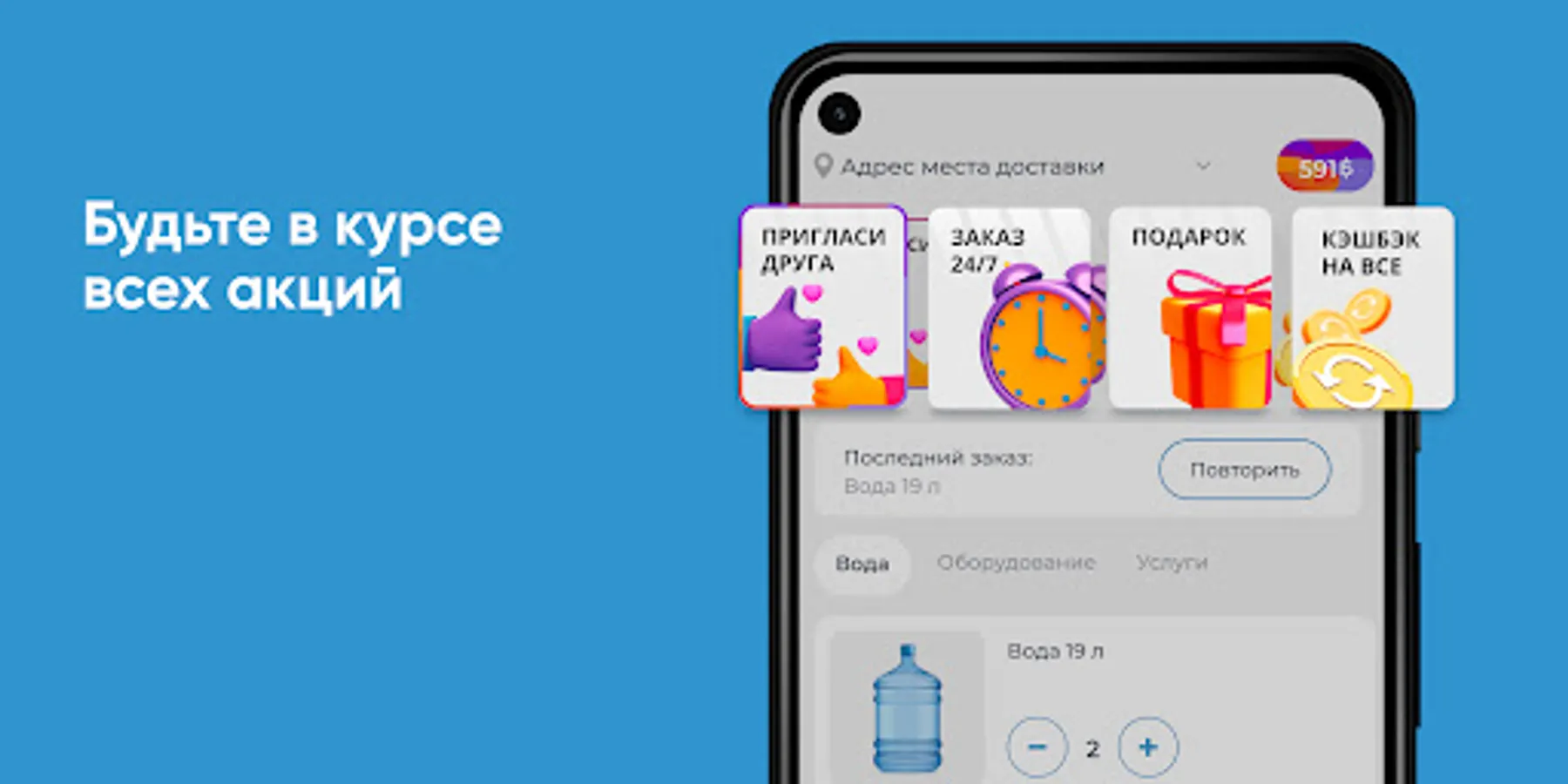 Download the Sterlitamak Red Key application to your smartphone and order water 24/7. You will be able to repeat the order with the click of a button, see the entire purchase history and keep abreast of all the company's promotions.