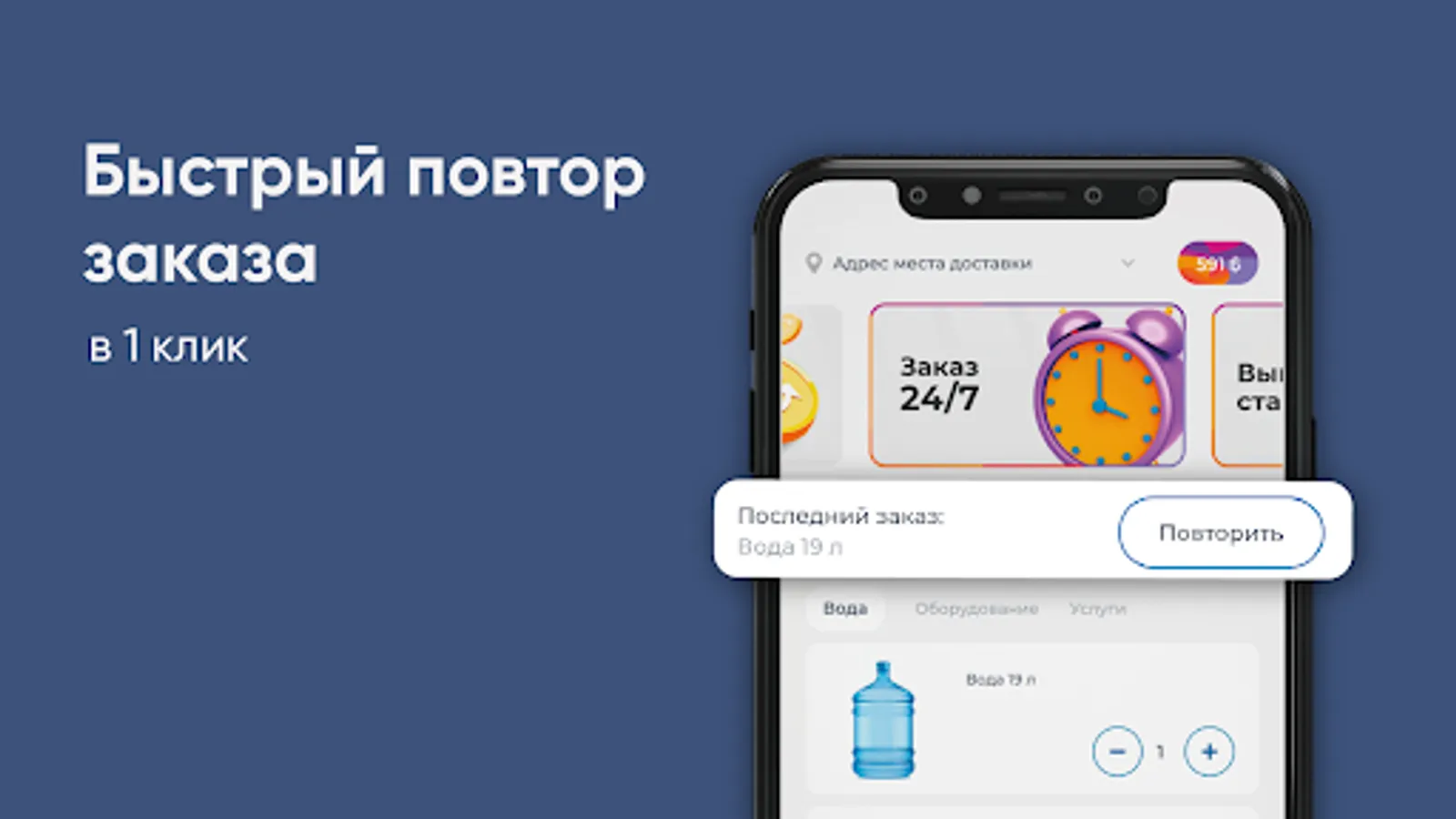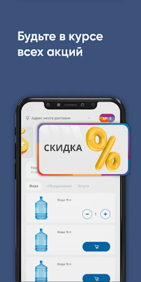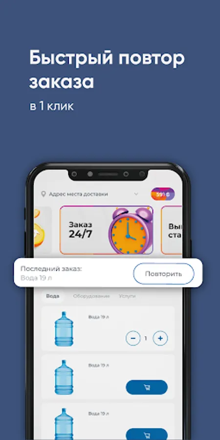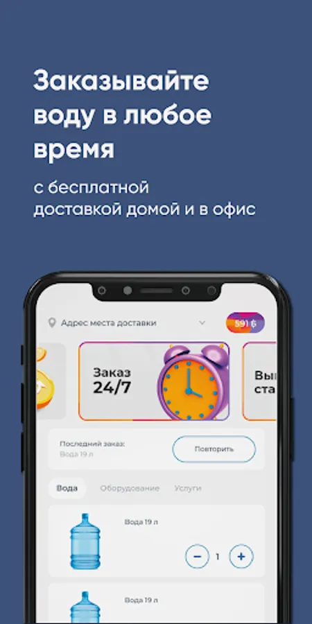 Ordering water in the ORGANIK AQUA app is quick and easy. All products are collected by category. Add the desired items to the cart and place an order at any time of the day.