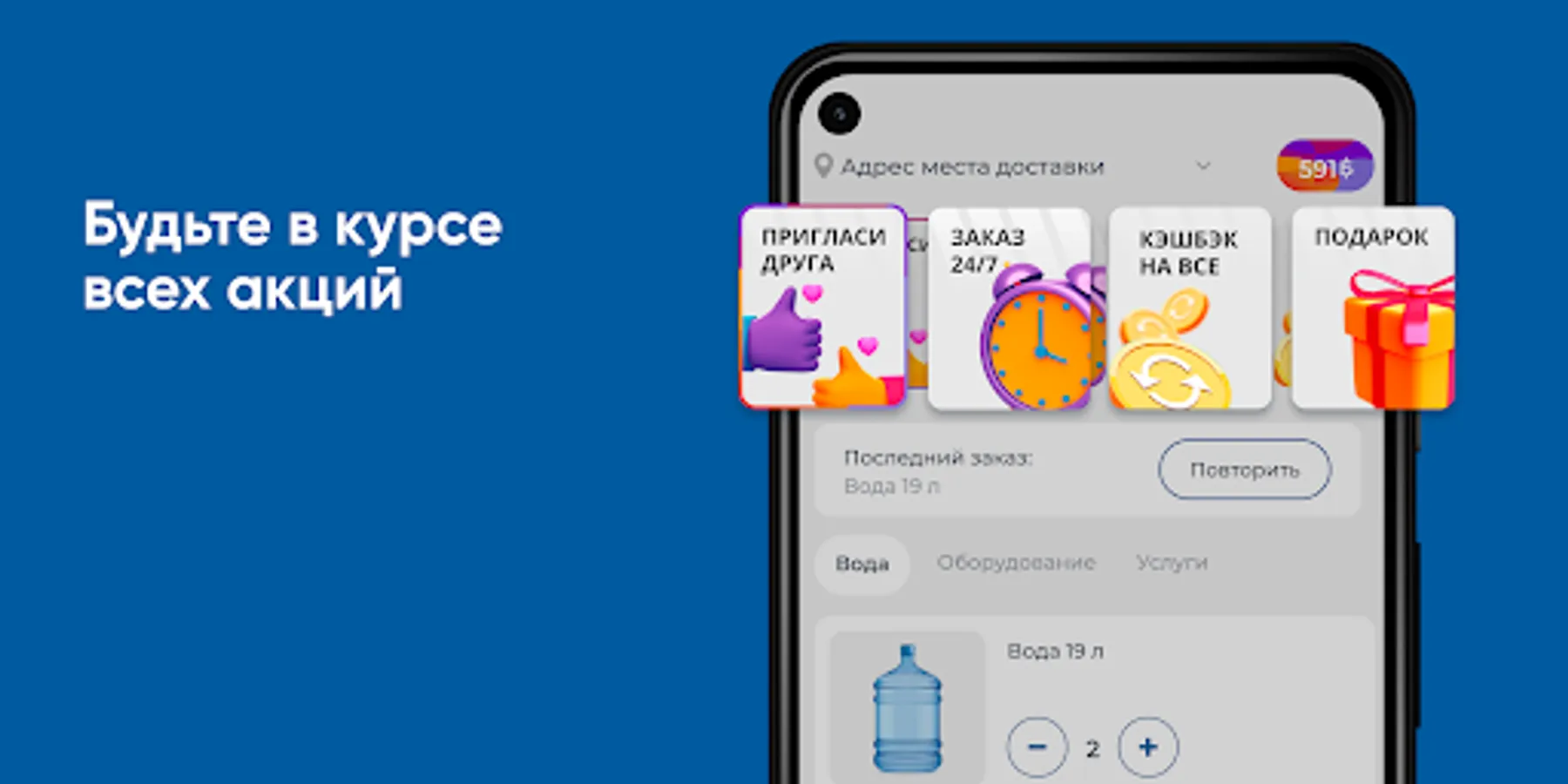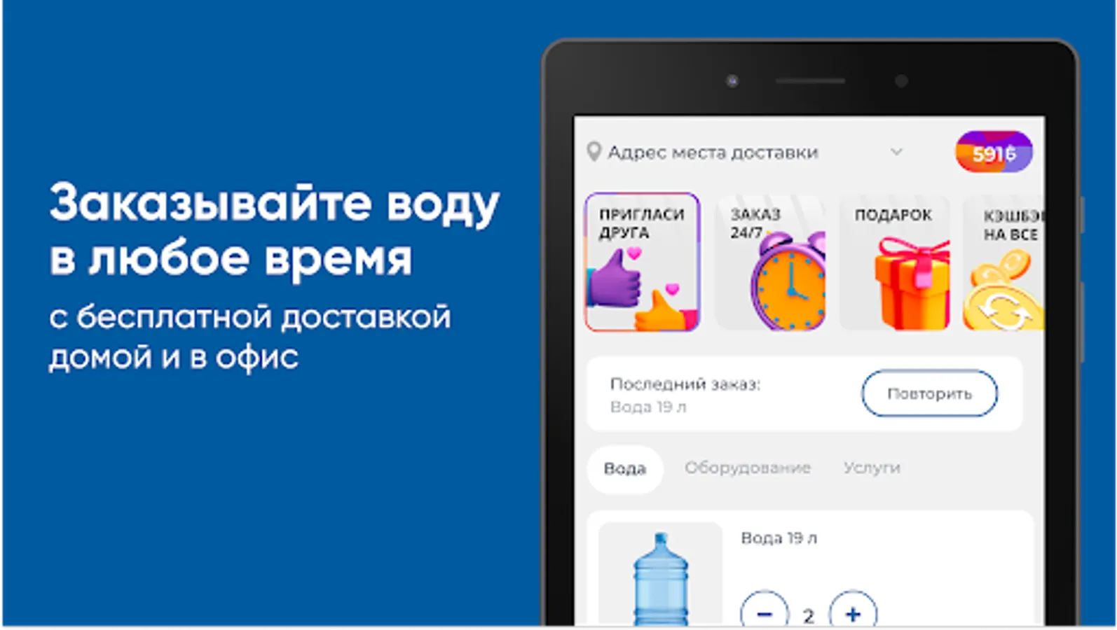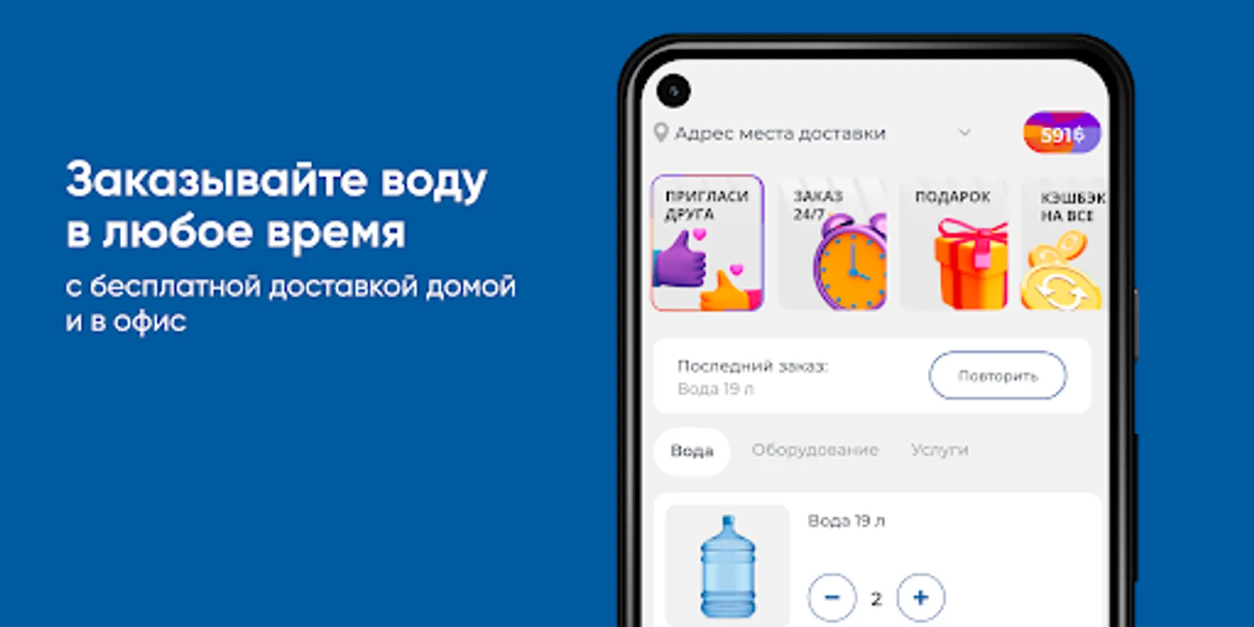 Download the Polar Glacier app on your smartphone and order water 24/7. You will be able to repeat the order by pressing one button, see the entire history of purchases and be aware of all the company's promotions.
