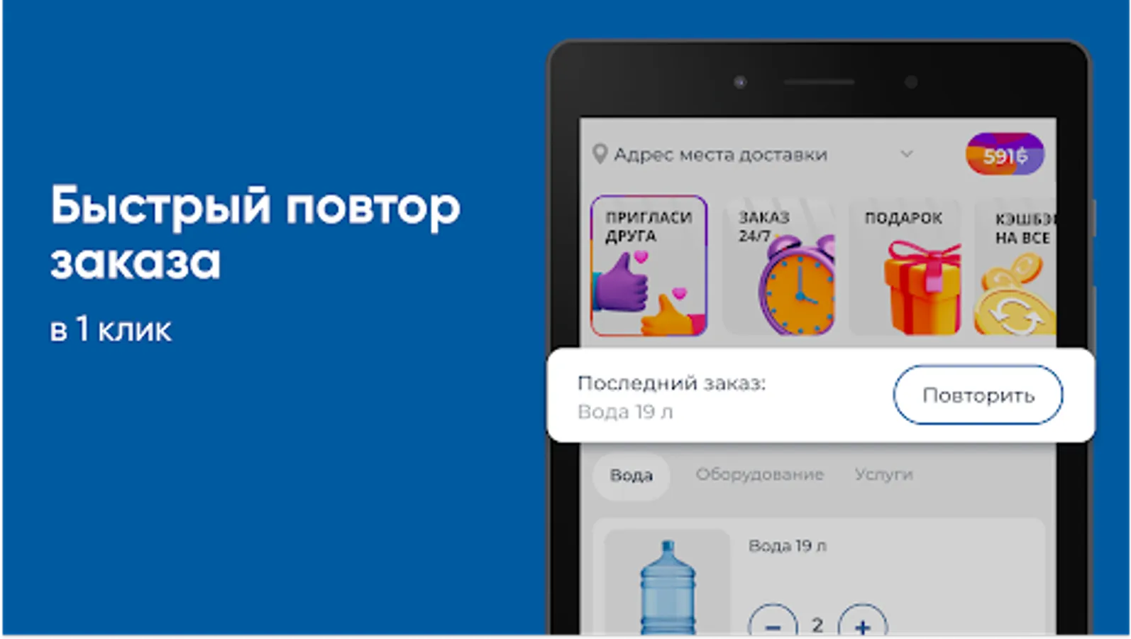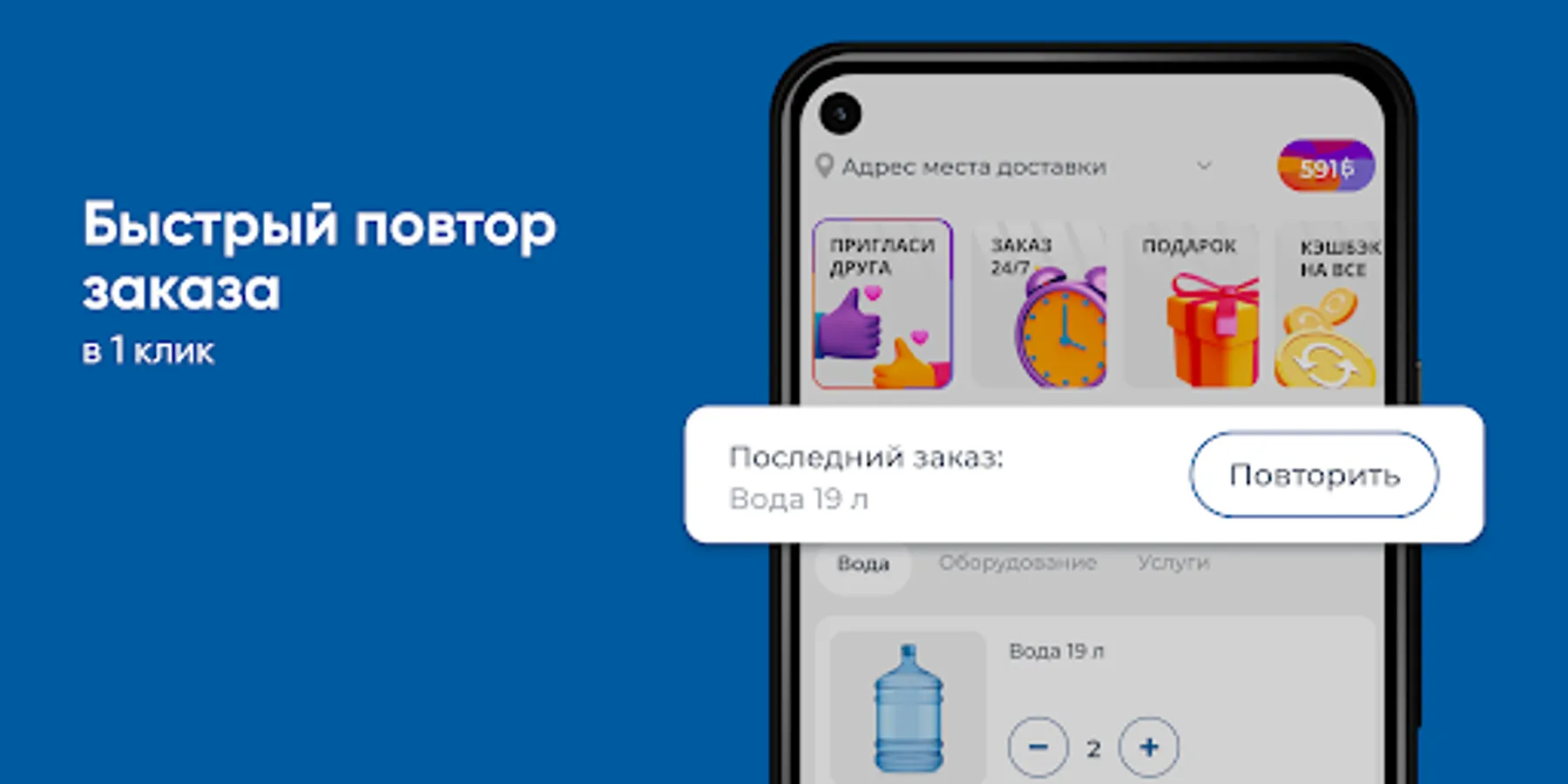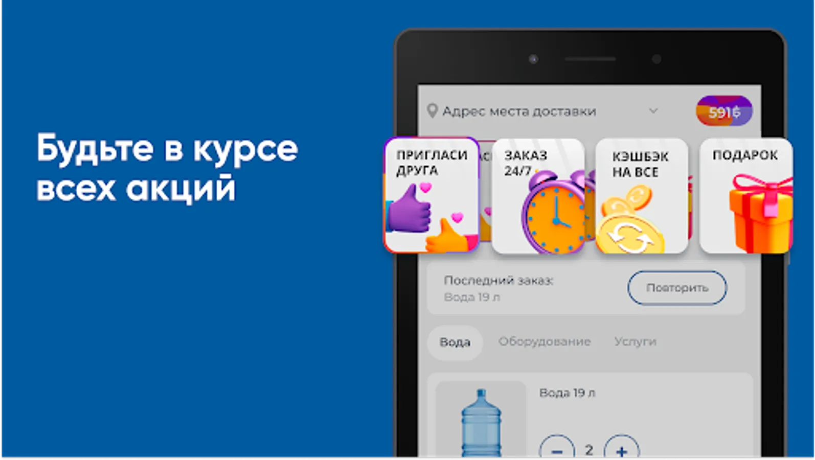 Download the Polar Glacier app on your smartphone and order water 24/7. You will be able to repeat the order by pressing one button, see the entire history of purchases and be aware of all the company's promotions.
