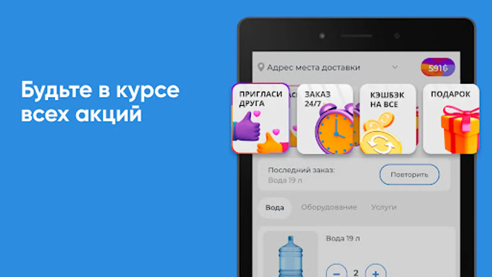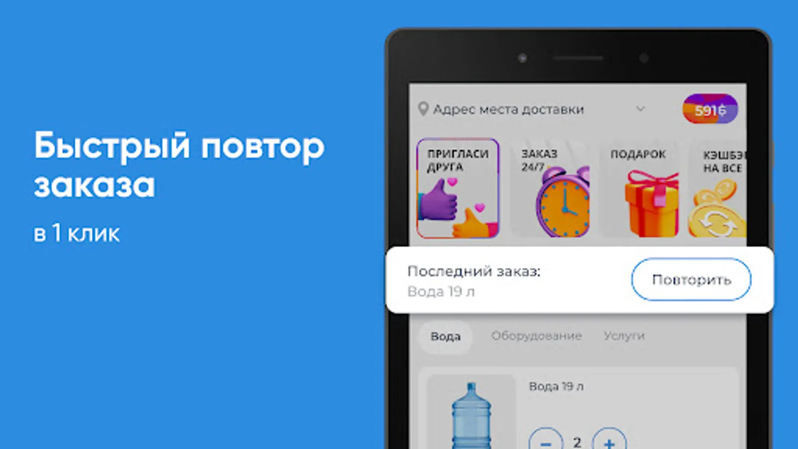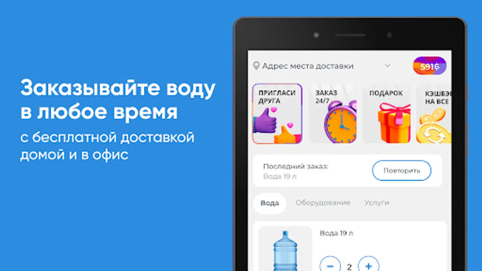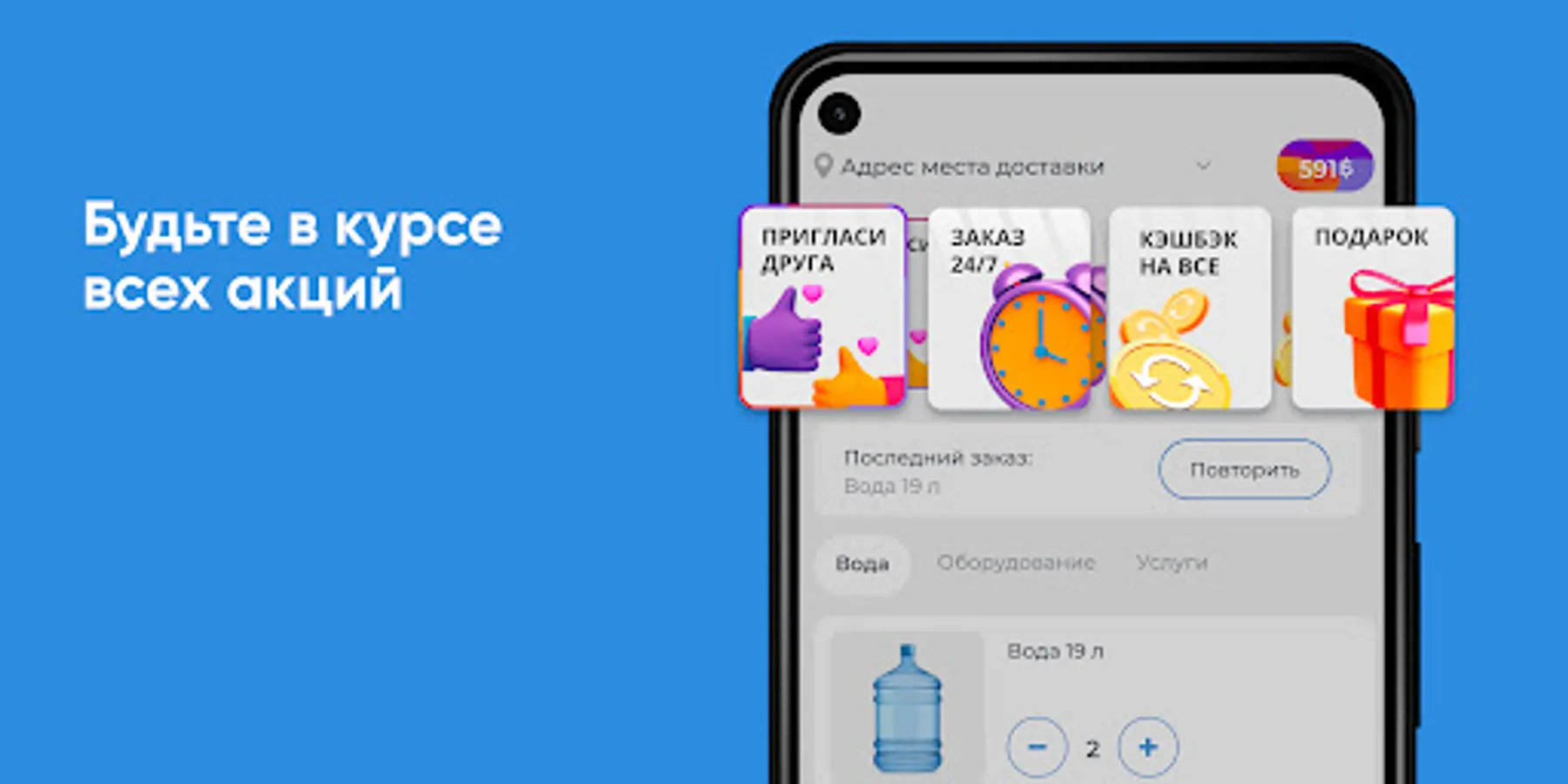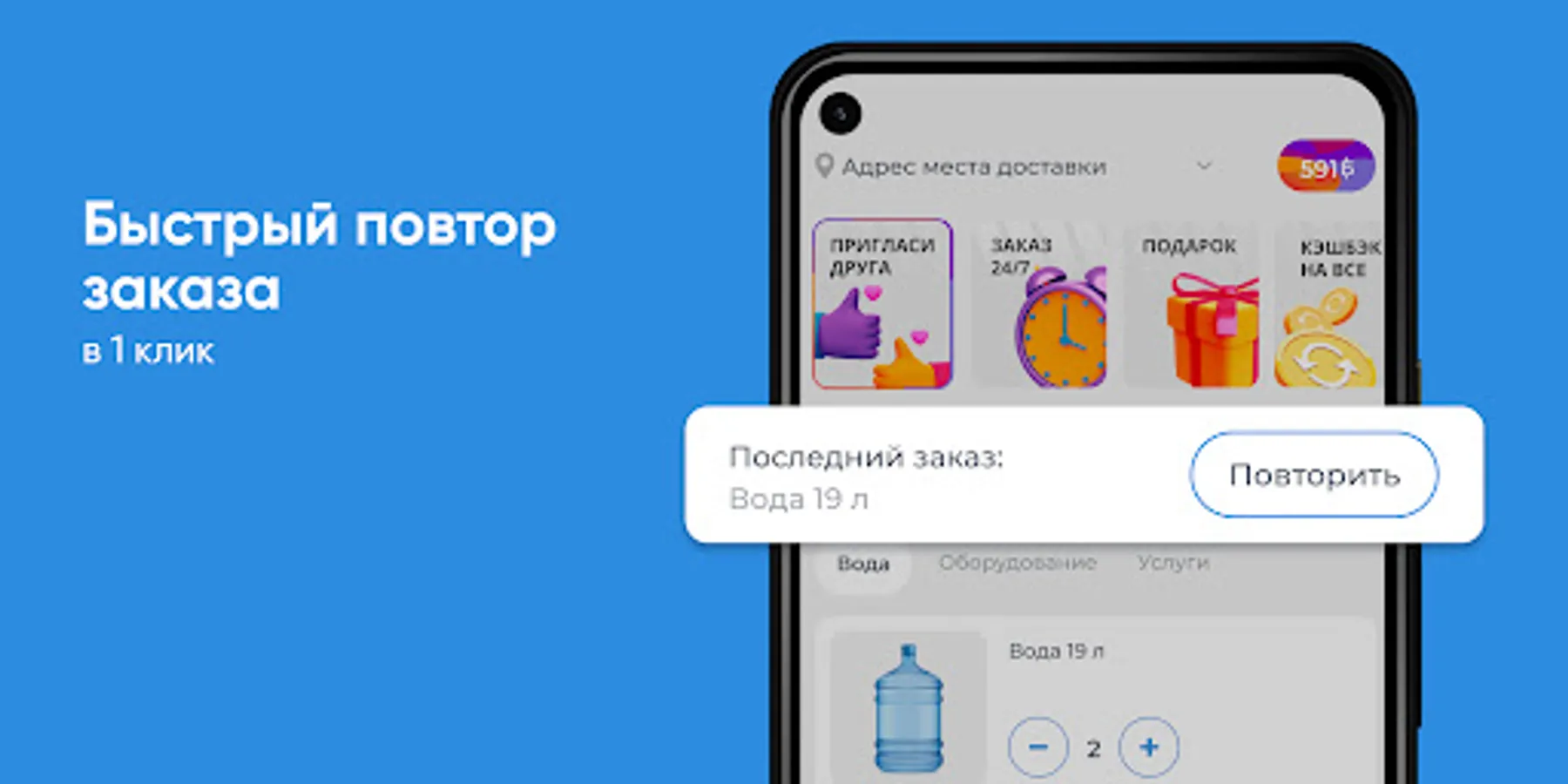 Download the Rodnikovaya Far East app on your smartphone and order water 24/7. You will be able to repeat the order by pressing one button, see the entire history of purchases and be aware of all the company's promotions.