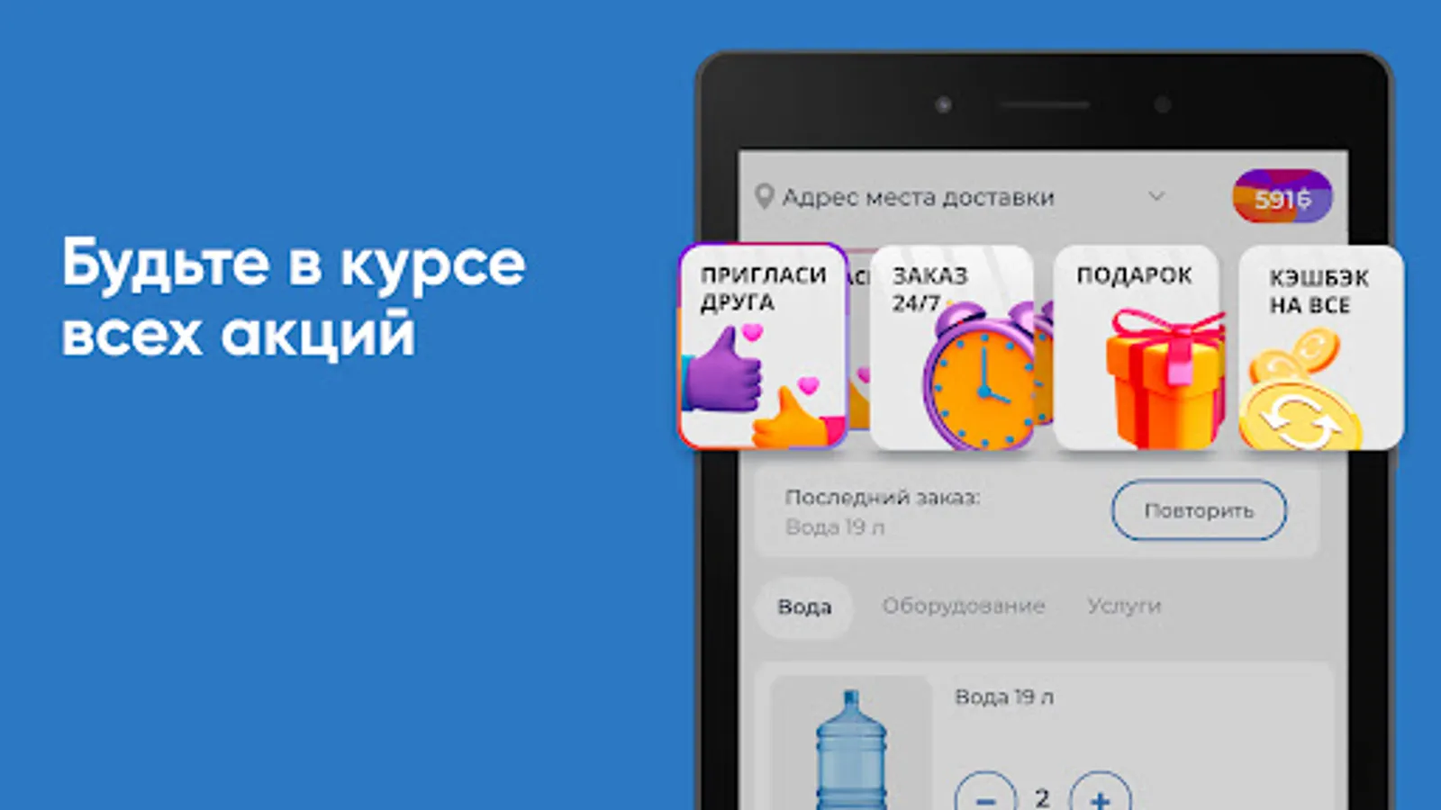 Download the application "Spring freshness Makhachkala" on your smartphone and order water 24/7. You will be able to repeat the order with the click of a button, see the entire purchase history and keep abreast of all the company's promotions.