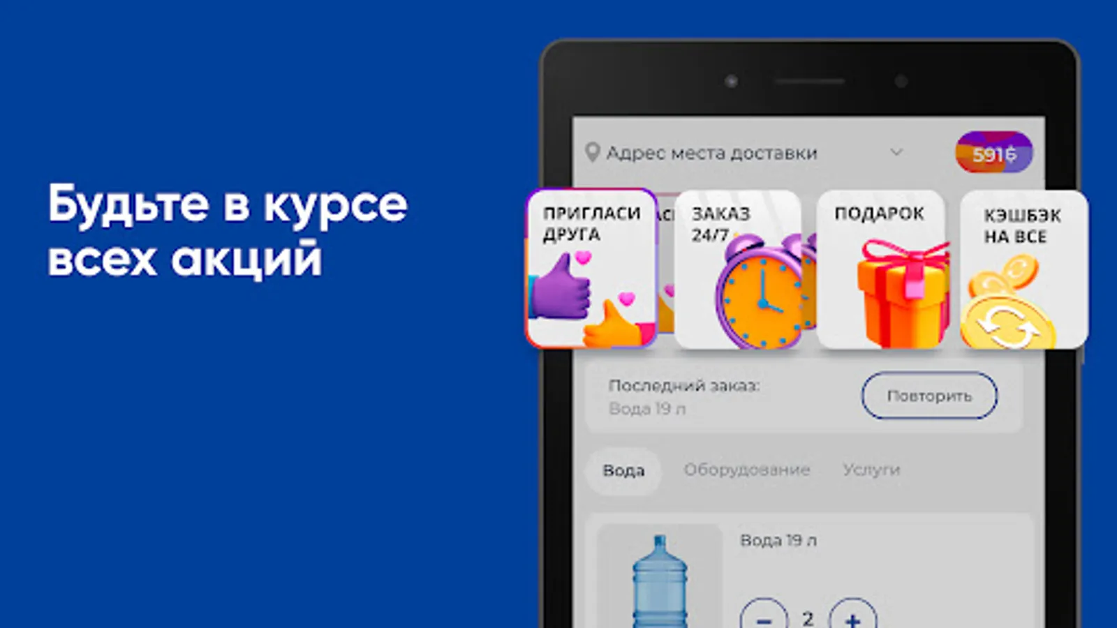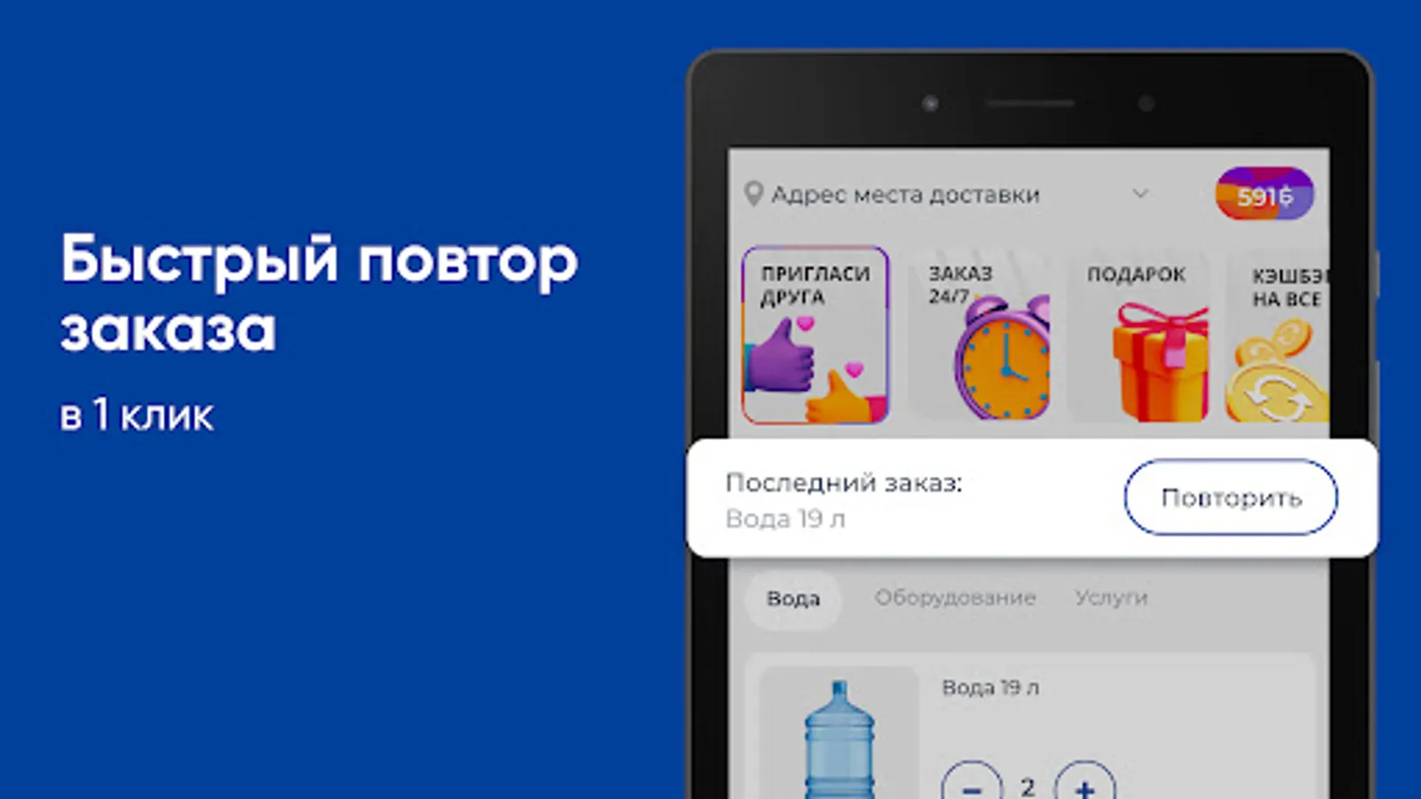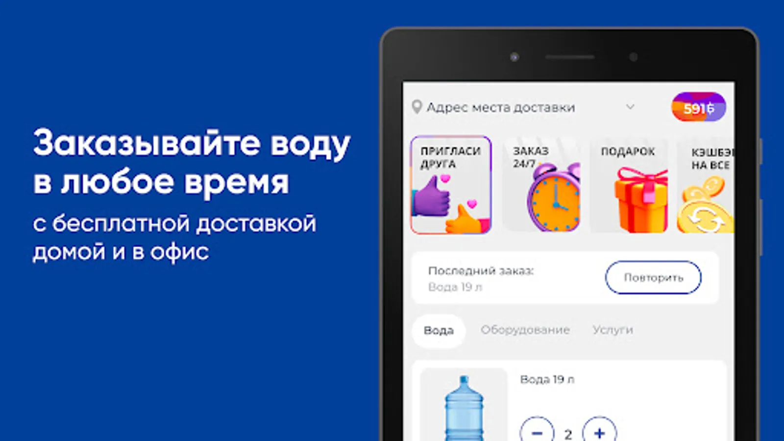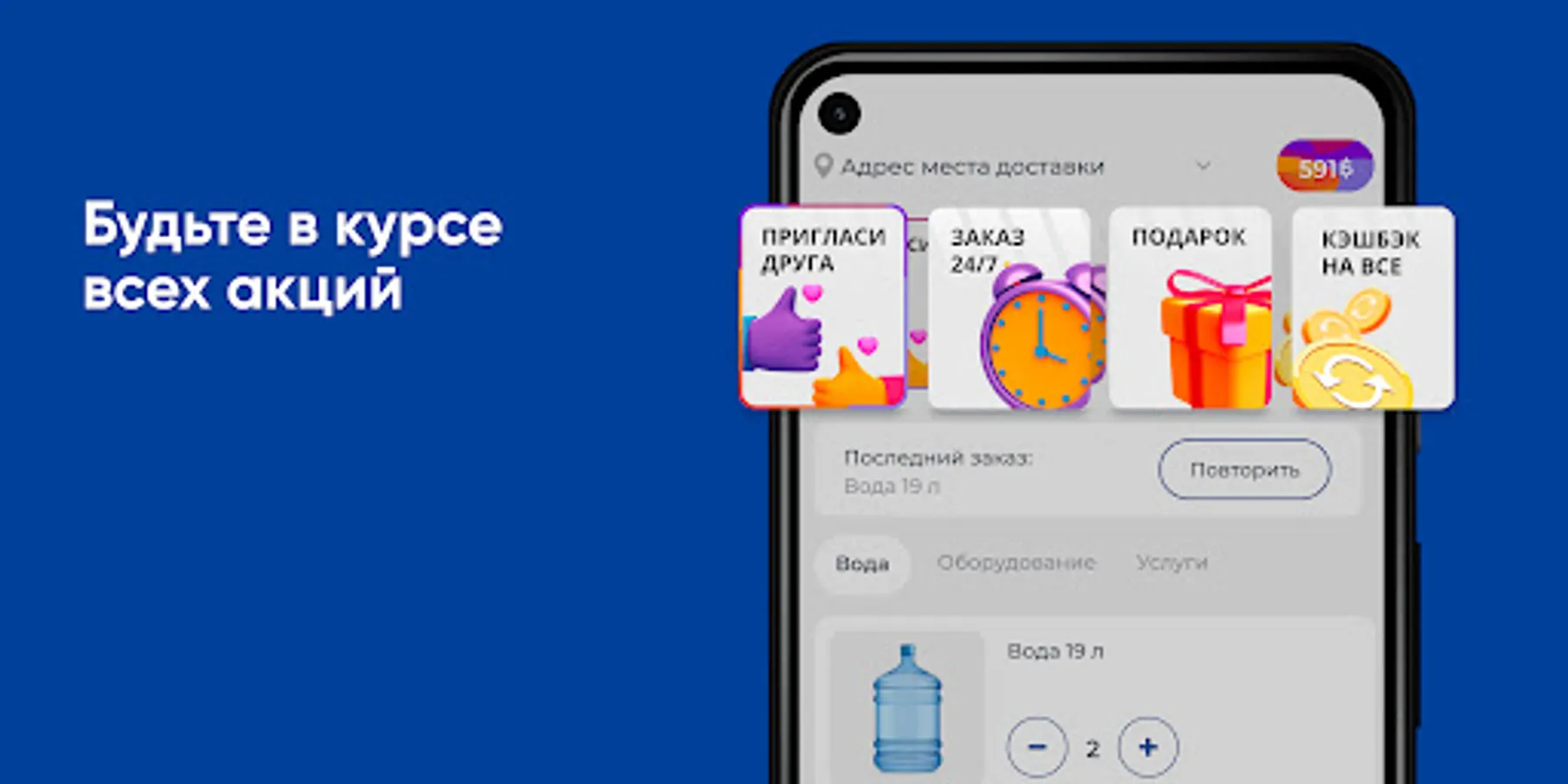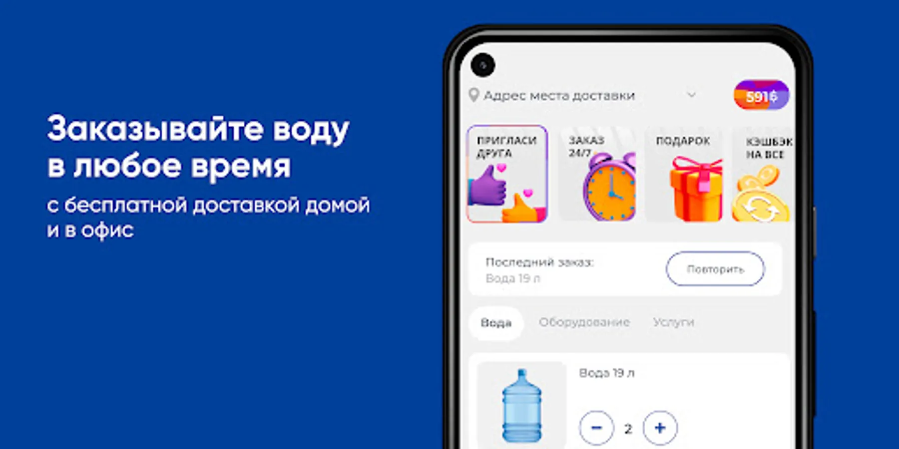 Download the Tomskaya Kristalnaya Tomsk application on your smartphone and order water 24/7. You will be able to repeat the order with the click of a button, see the entire purchase history and keep abreast of all the company's promotions.