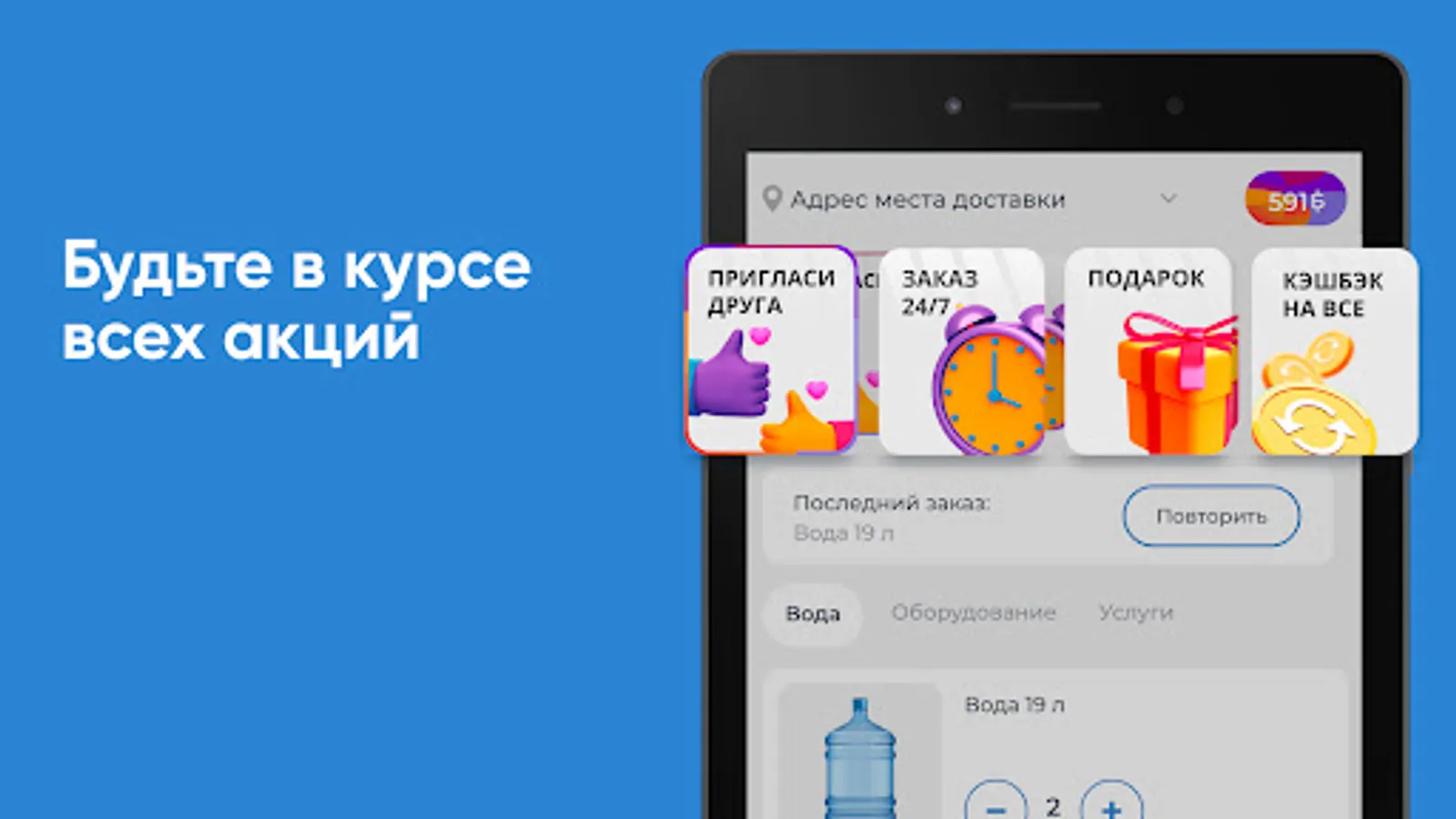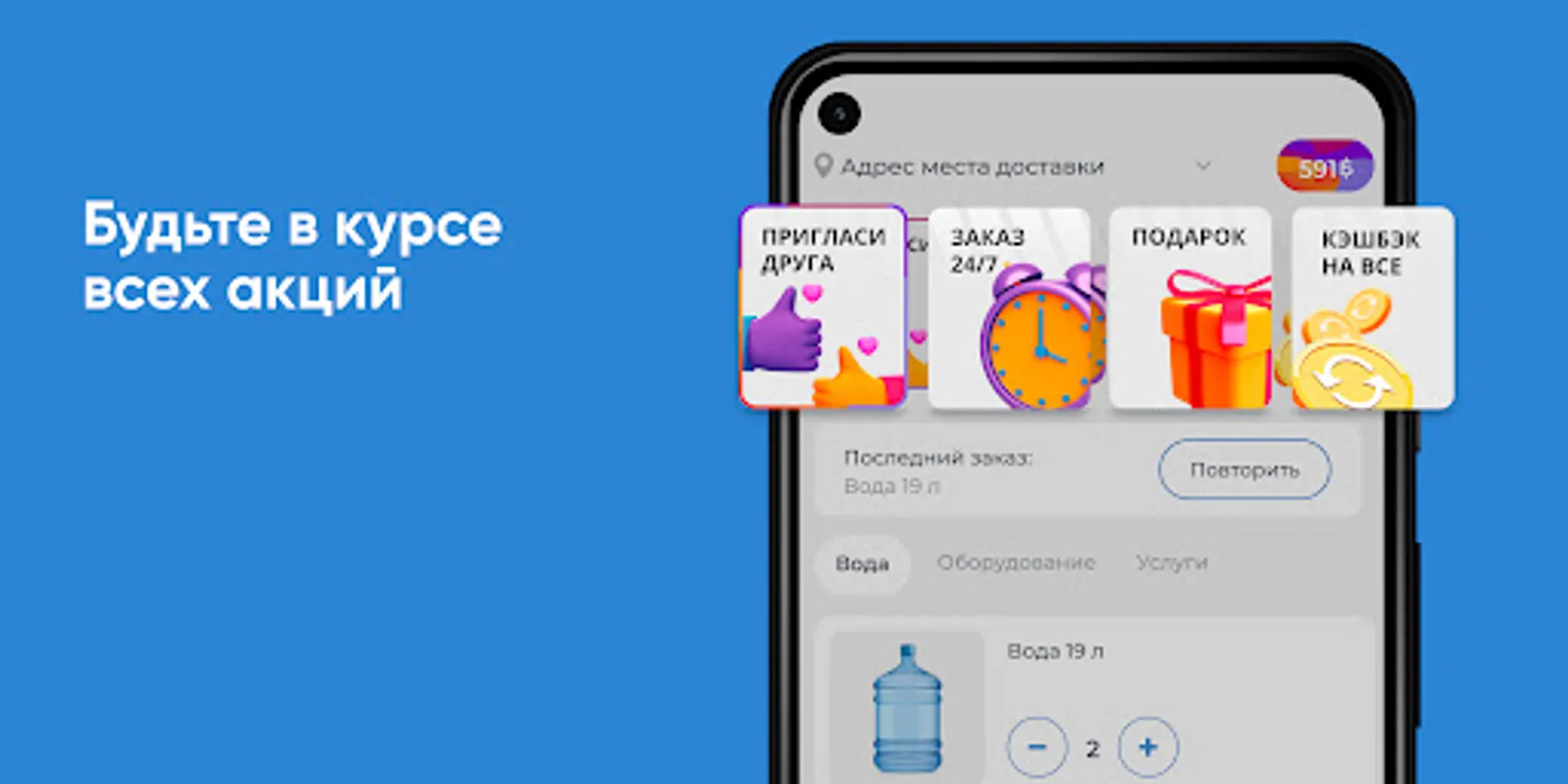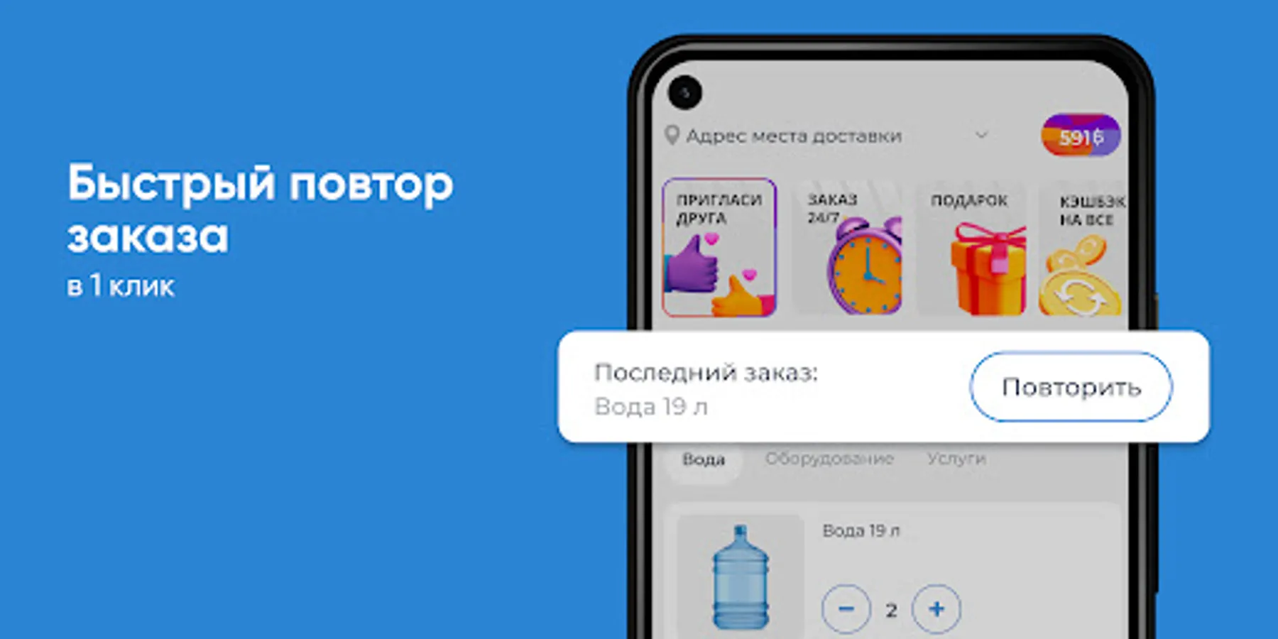 Download the application "Chita Living Water" on your smartphone and order water 24/7. You will be able to repeat the order with the click of a button, see the entire purchase history and keep abreast of all the company's promotions.