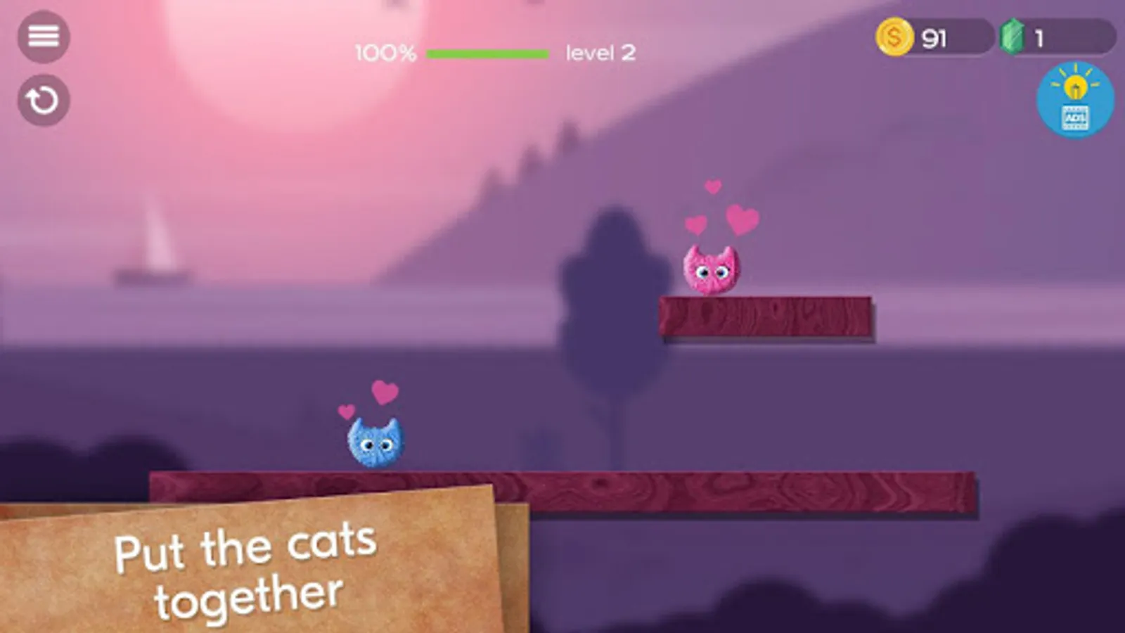 Each level is a new puzzle. Can you find the shortest solution? Use the tips and learn how to tie cute kittens with a rope of love.