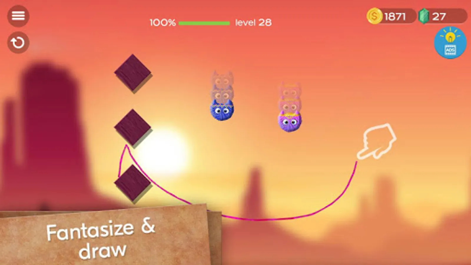Draw lines with your finger to make cute kittens, like balls in love, roll towards each other.