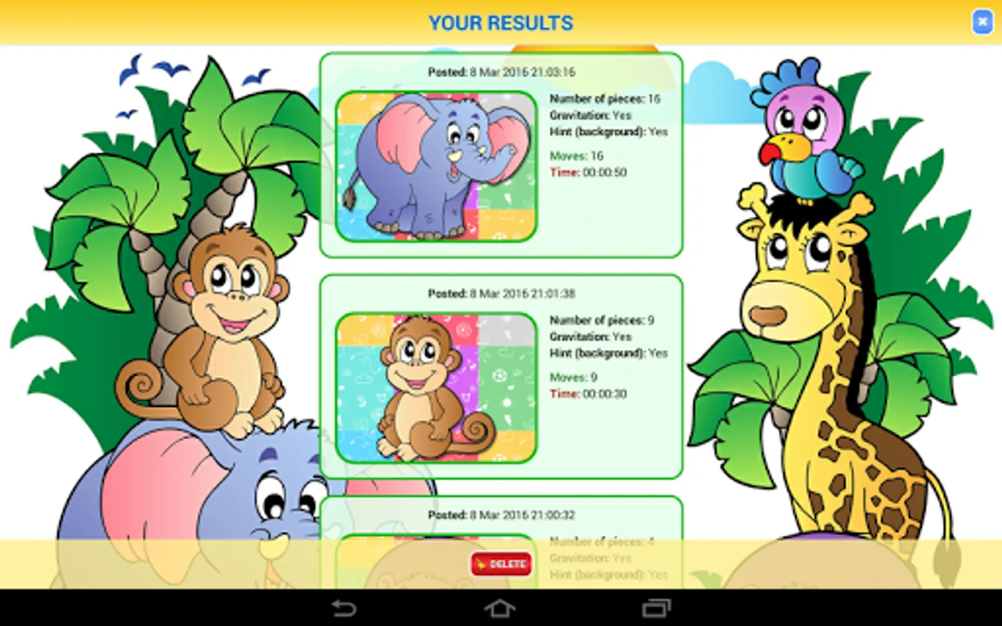 You can easily solve images with joy and fun using this application. It will work on most smartphones, including ones with small screens, as well as for tablets. Modes include classic or gravity image! Each mode has individual settings that allow to adjust difficulty level. There is "hint" mode, option to save and view full history of game results.