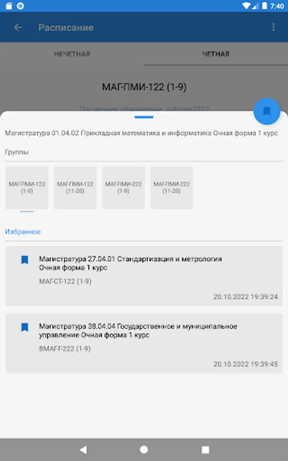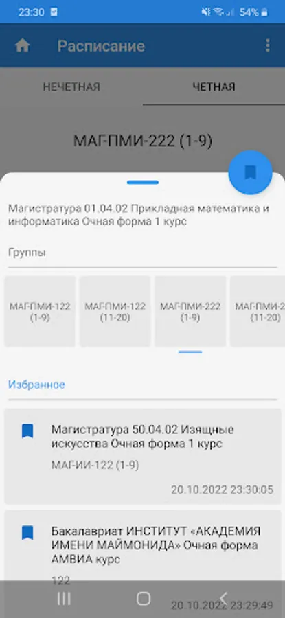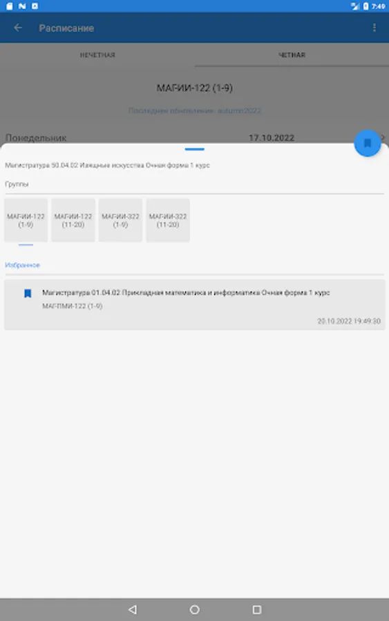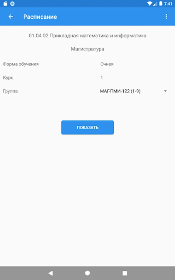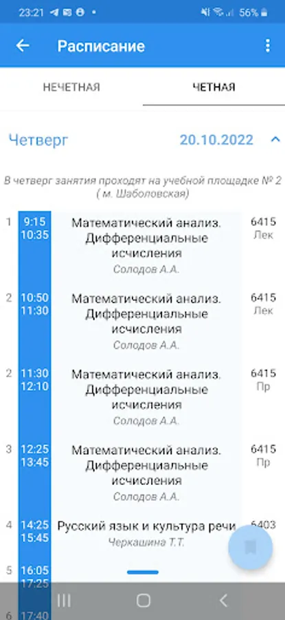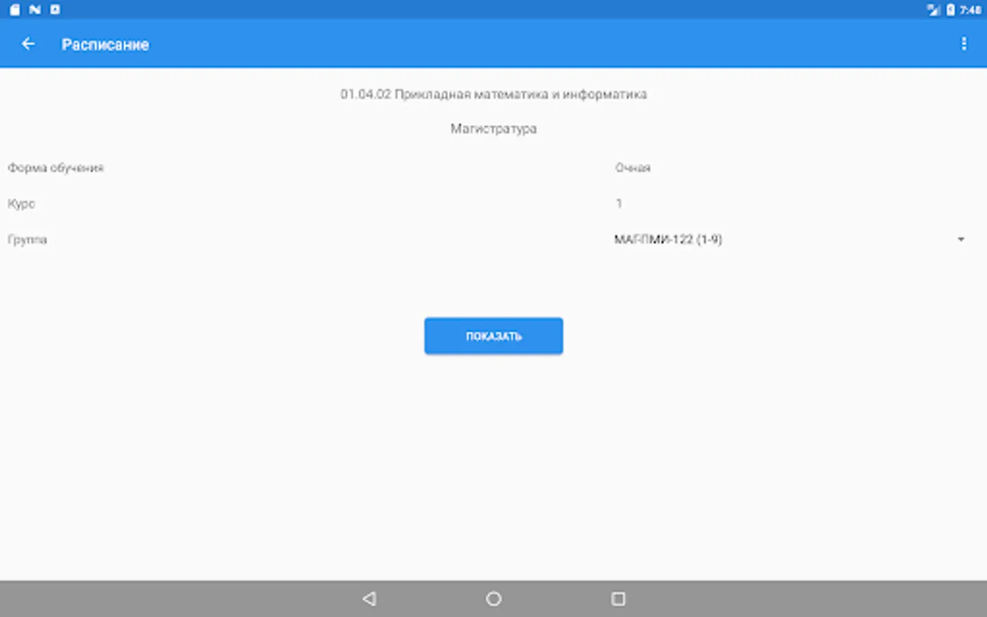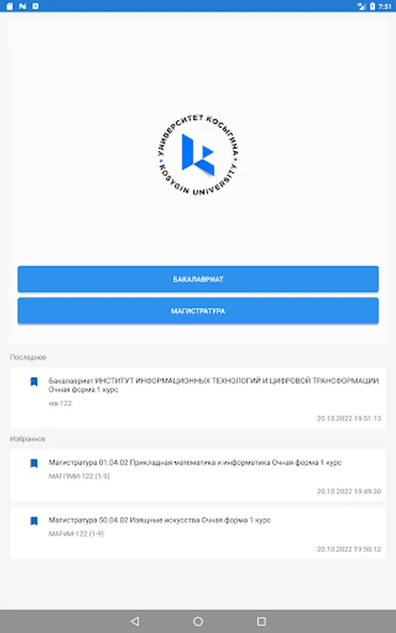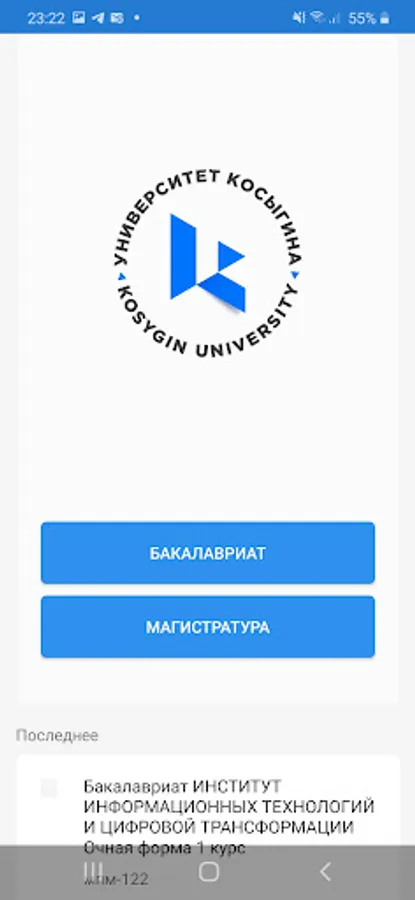 This application displays the schedule of training sessions of the Russian State University. Kosygin full-time and part-time forms of education.
