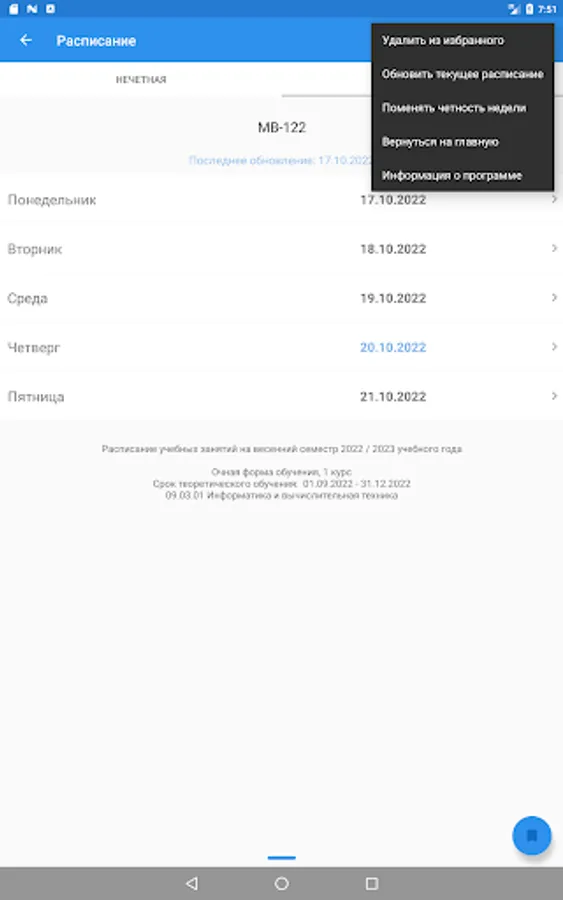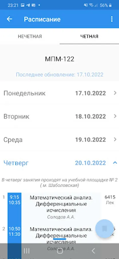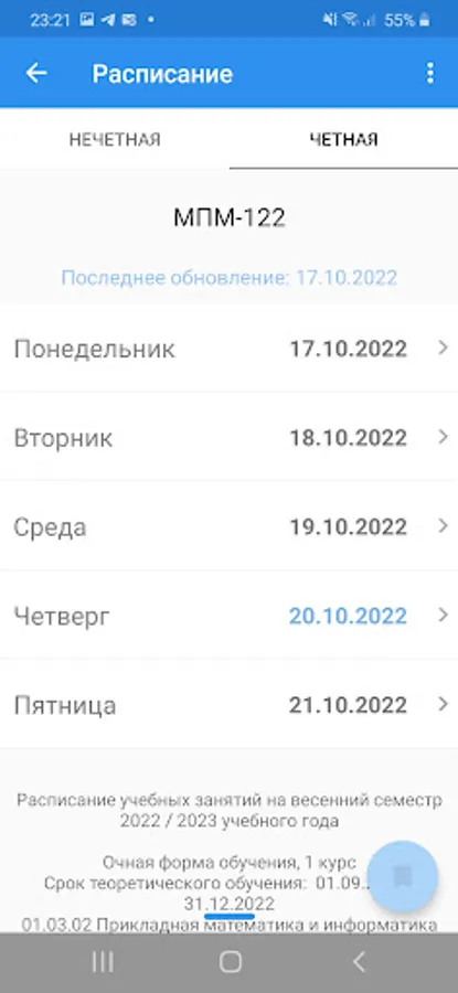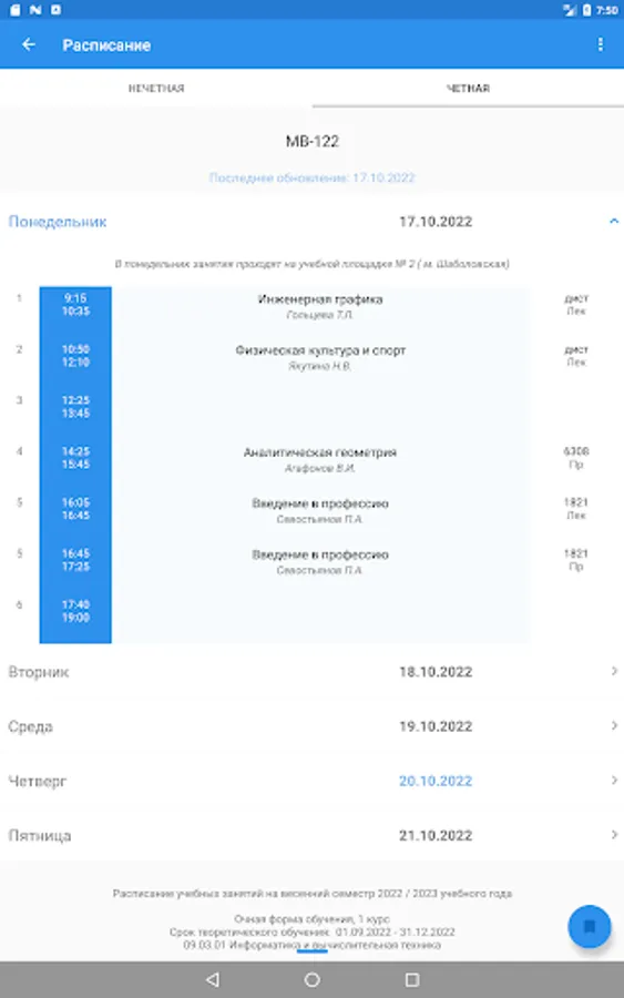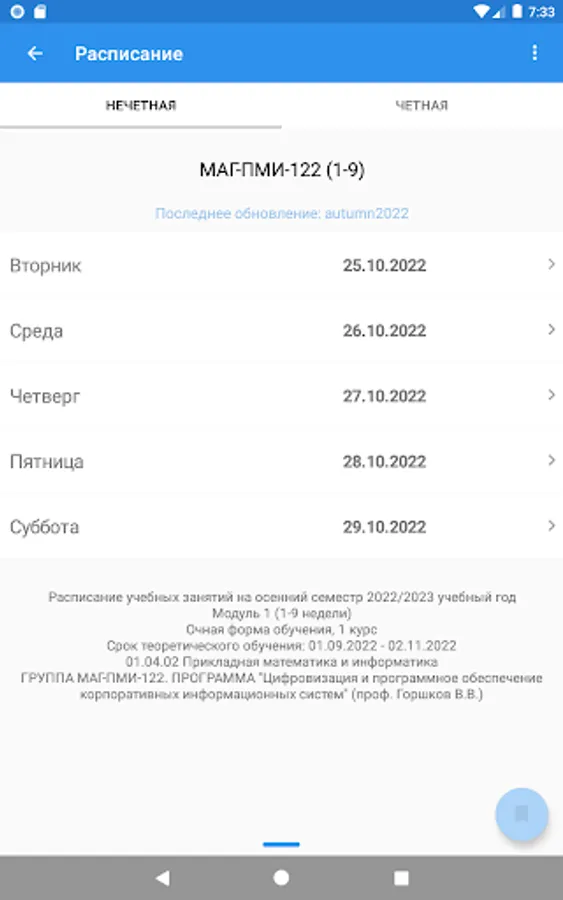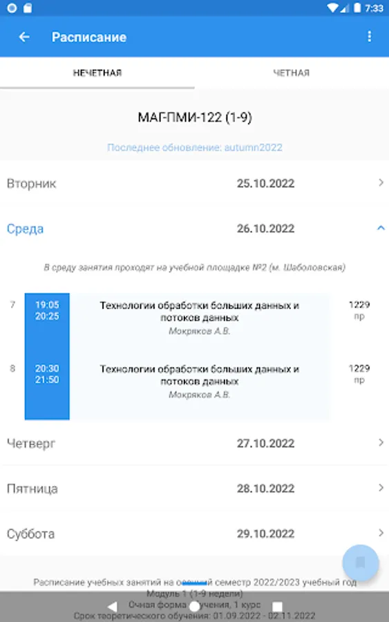 At the moment, this is only an attempt to make a mobile schedule for all institutes of the university
