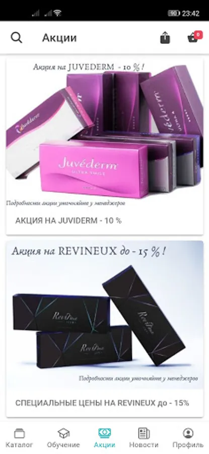 The application has a beautiful and user-friendly interface, so that any expert in real time in one place gets access to the product catalog and the possibility of online recording for training seminars held by suppliers.