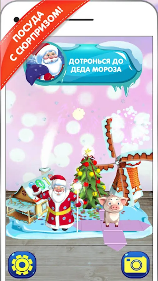 Elements of augmented reality are tied to the image on the dishes, so the picture should be constantly in the field of view of the camera of your device.