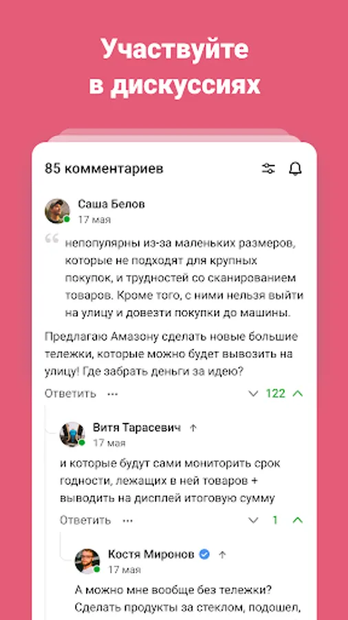 • Leave comments below posts. Thousands of comments appear on vc.ru every day.