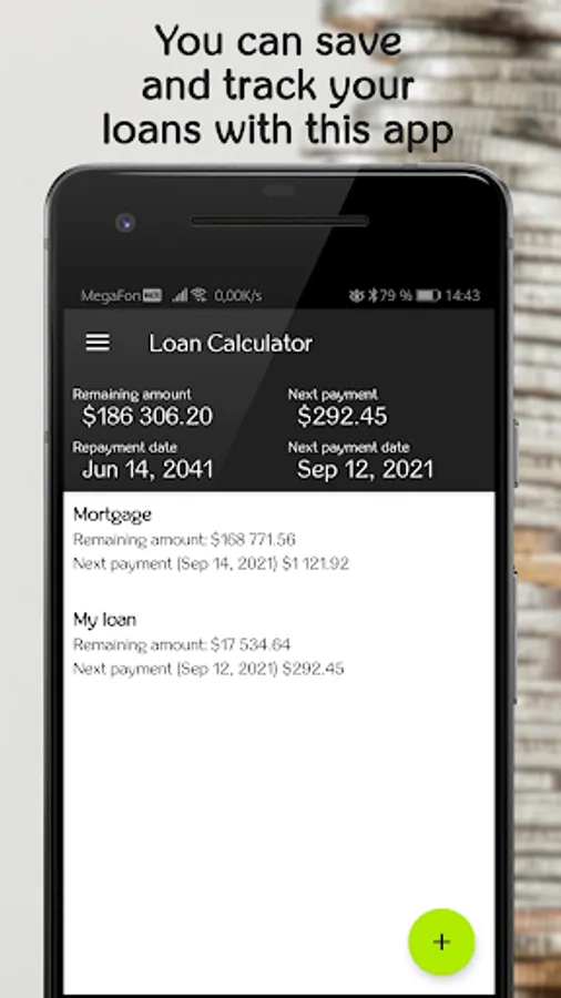 - You can save and track your loans with this app